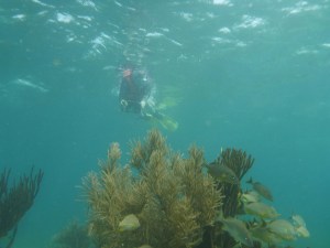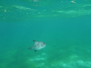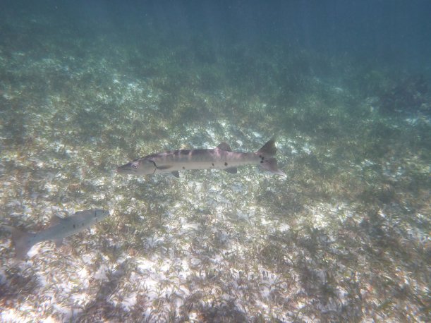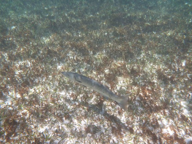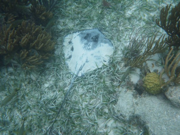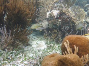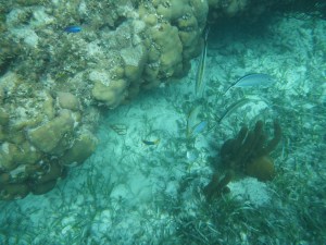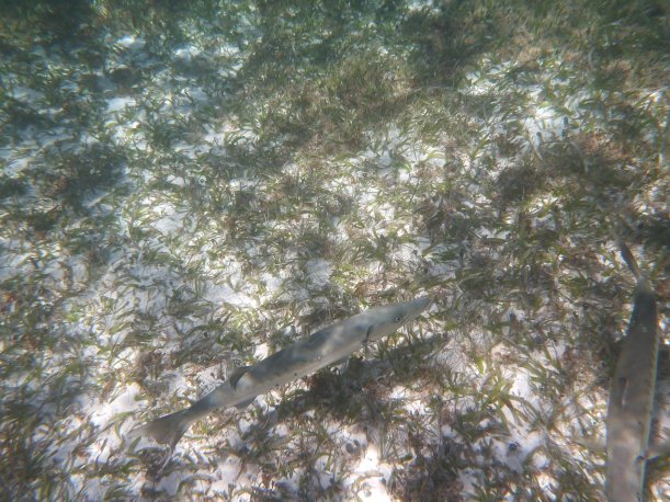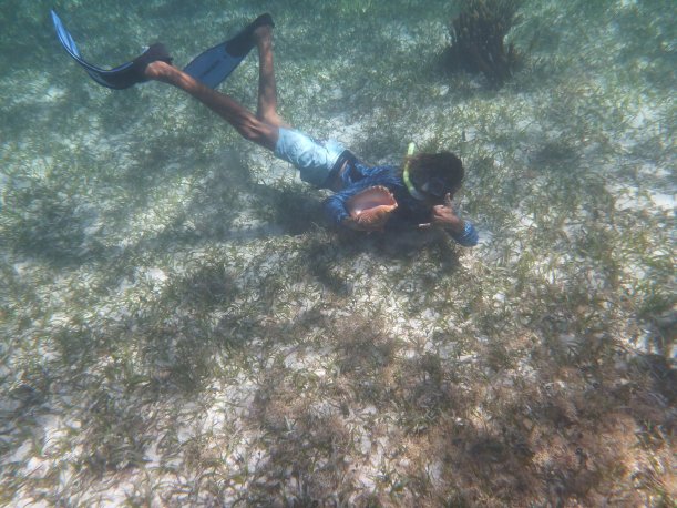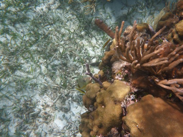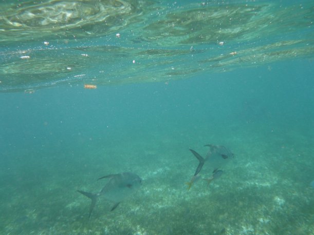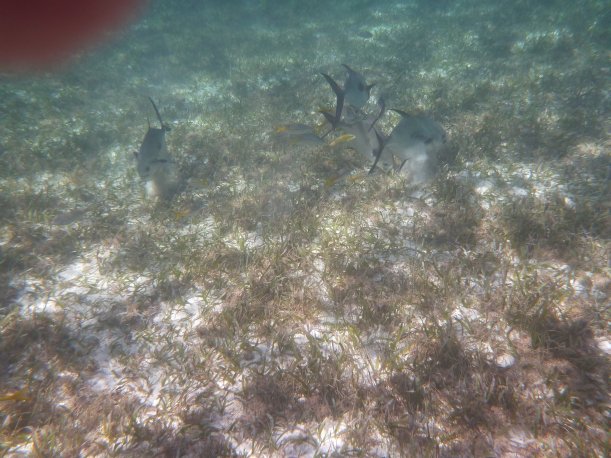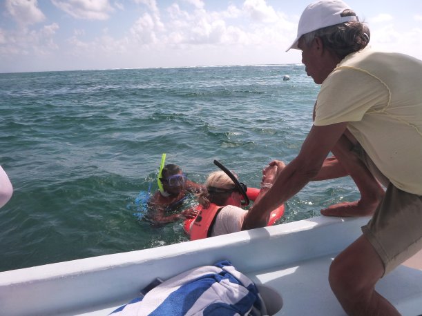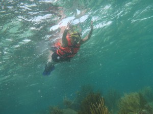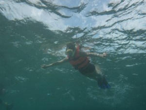 It’s windy, choppy, and the swimming against the current was rough. We’d swim up to the reef but the current pushed us away back to the eel grass. Orie did really well. She hung onto the life preserver and the divemaster pulled her around. It was great, most first time snorkelers have problems breathing through the snorkel. She mástered it.
