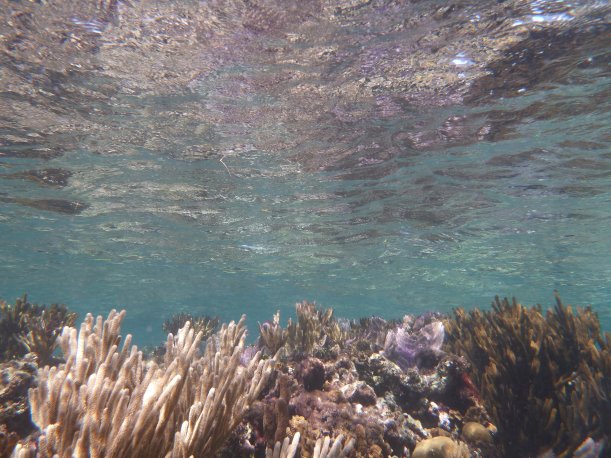 A reflection from coral on the waters surface
