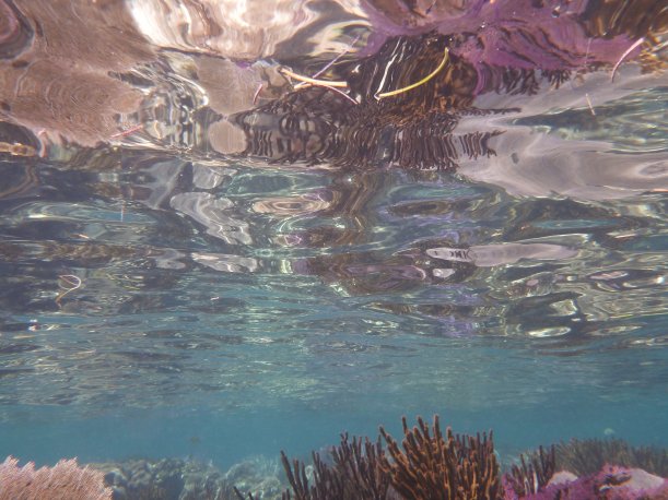 A reflection from coral on the waters surface