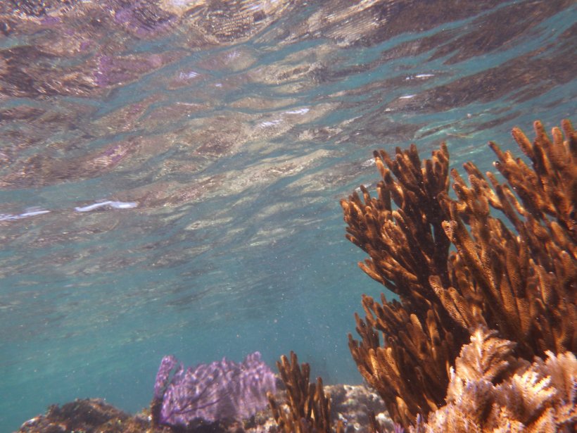 A reflection from coral on the waters surface