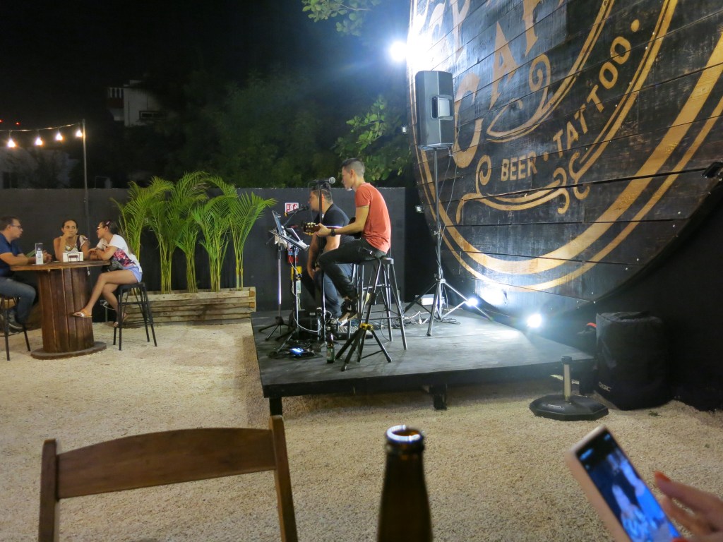 Right in the back of the building, Casa Velero, where I stay. They opened a club, during this year. At night I sit at the end of the turtle garden and Palm Trees, where there’s a nice breeze in the evening, and listen to the music from the club. It’s a mixture of mexican and old rock and roll. We decided to visit the club, since I’ve been listening to the music for free.