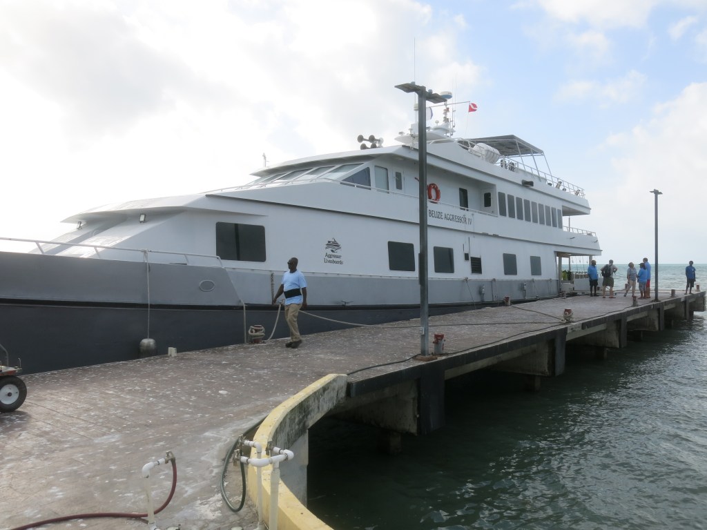 We arrived into Belize City. Snorkel venture picked us up at the airport and took us right to the boat, the Aggressor IV. We boarded after 3 pm and were greeted with snacks and a briefing about what to expect this week. Met my fellow crew members.