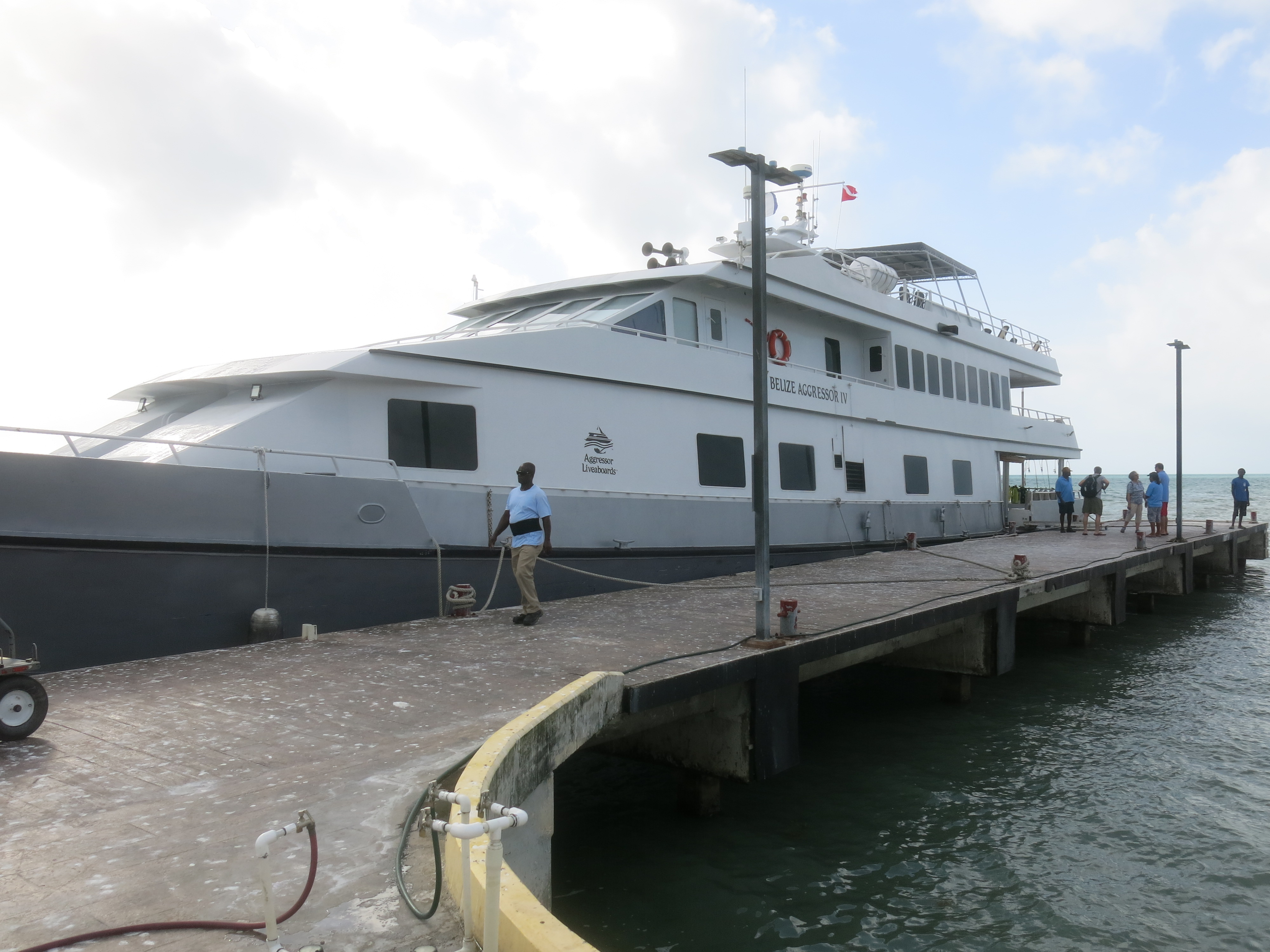 We arrived into Belize City. Snorkel venture picked us up at the airport and took us right to the boat, the Aggressor IV. We boarded after 3 pm and were greeted with snacks and a briefing about what to expect this week. Met my fellow crew members.
