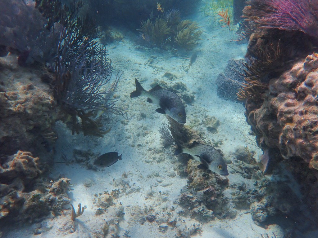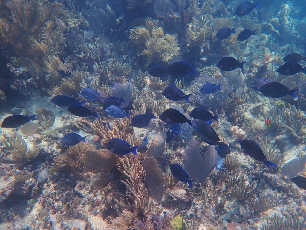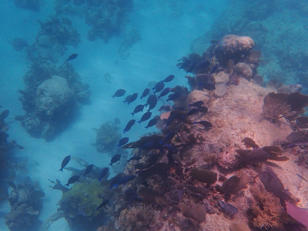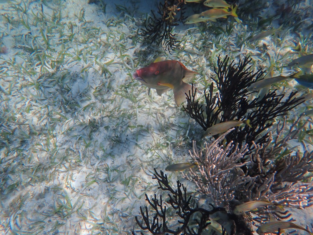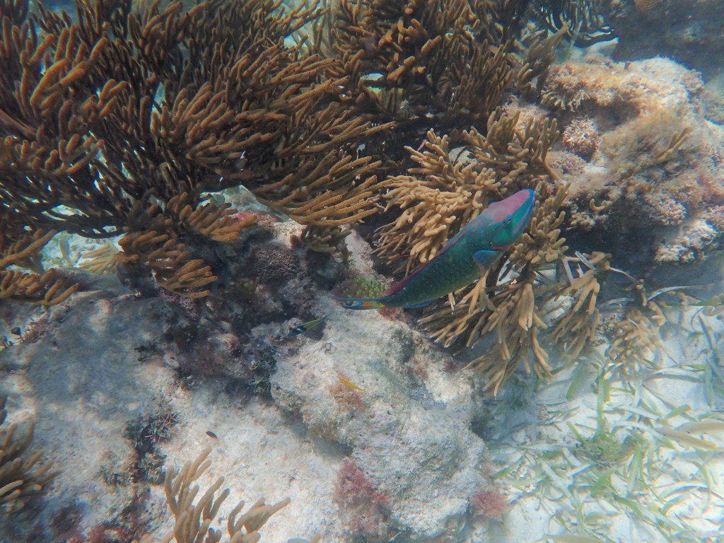 It rained all morning. The visibility in the water isn’t too good, things are a bit stirred up. But the sights are still beautiful, if just a little cloudy.