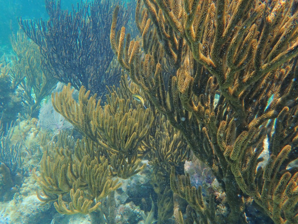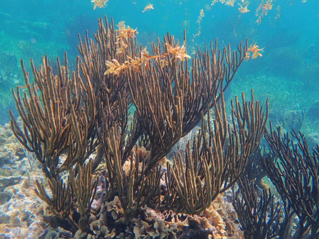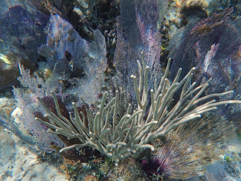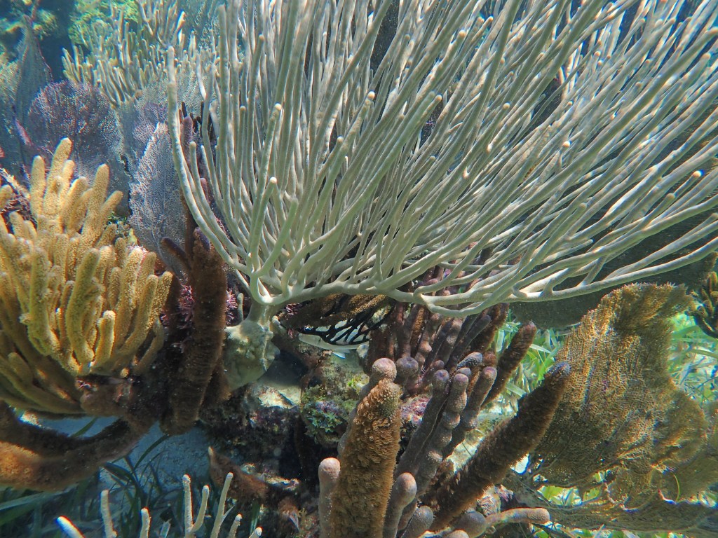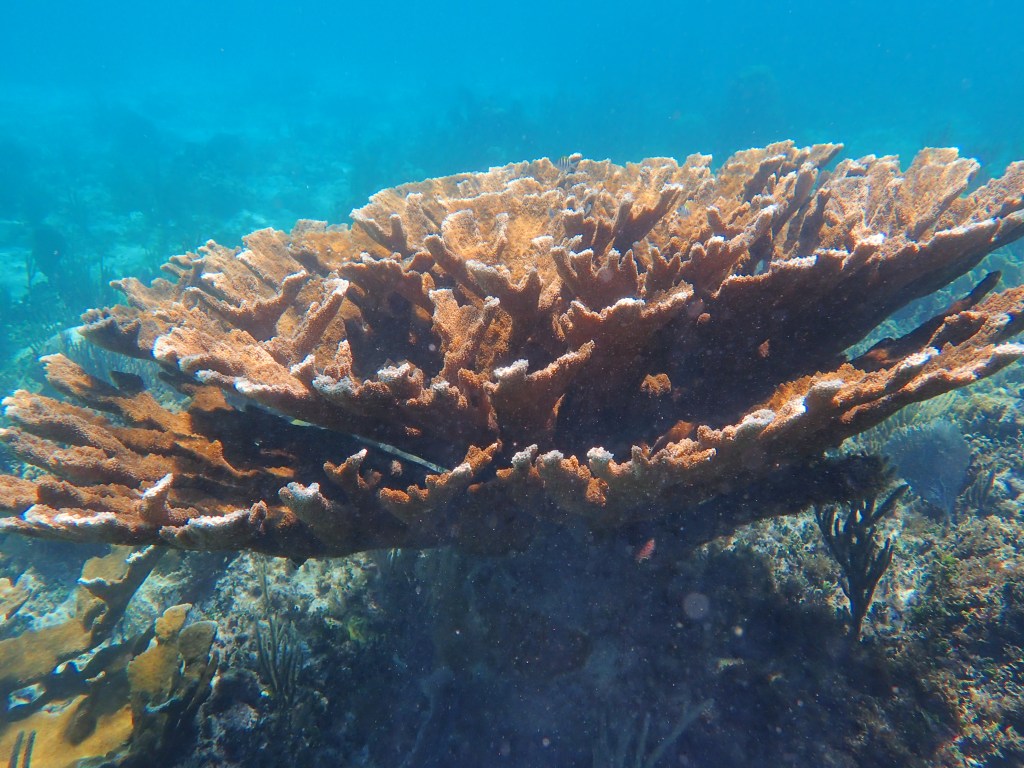The hard corals grow slower and are more endangered. There was a time when you could see fields of this elk-horn coral, now its solitary specimens.