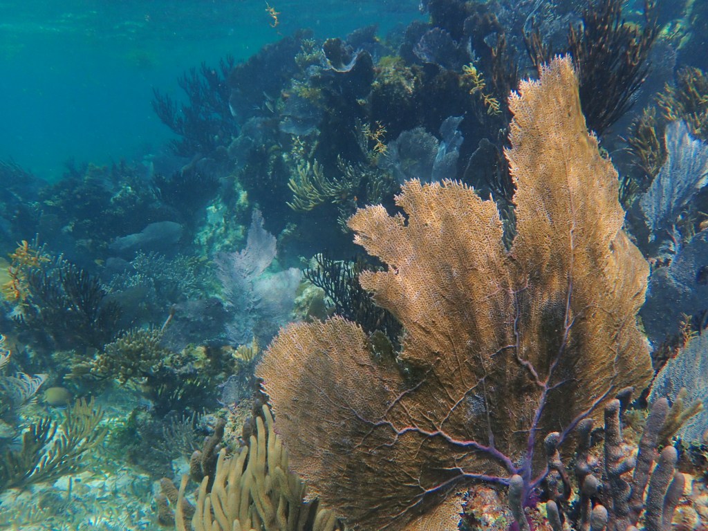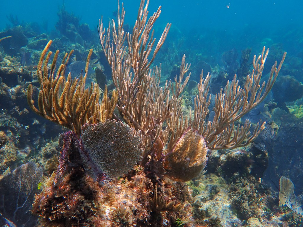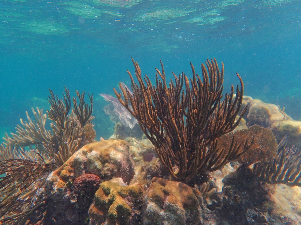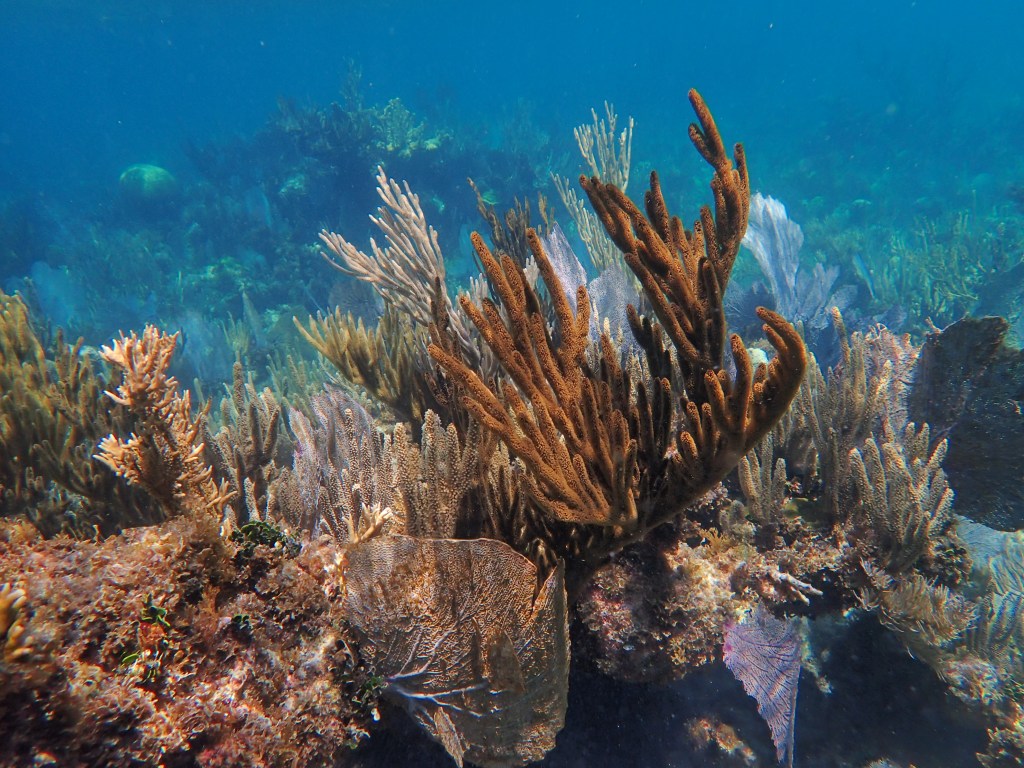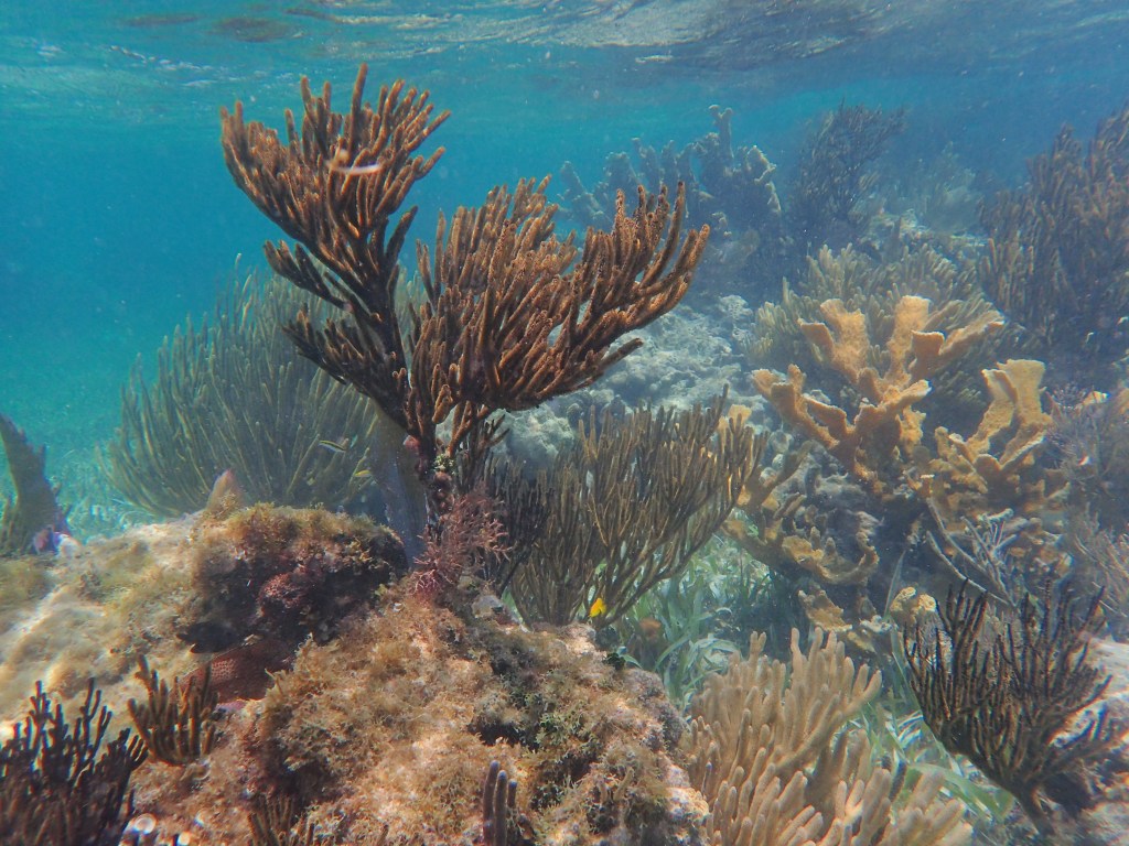 The hard corals grow slower and are more endangered. There was a time when you could see fields of this elk-horn coral, now its solitary specimens.