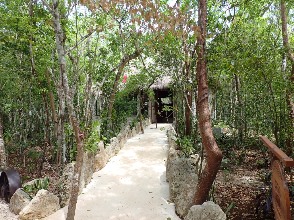 Last year I visited Siete Boca cenote. I loved it and you can see pictures and past blogs posts from 2021. This year,I plan to visit a new cenote. While Siete Boca was fabulous, the grounds were rustic. This one, Zapote Cenote has the WOW factor! The cenotes are beautiful and the grounds are so gorgeous! I spent time just looking at the foliage. Everything was sculptural, all the structures so architectural and lush.