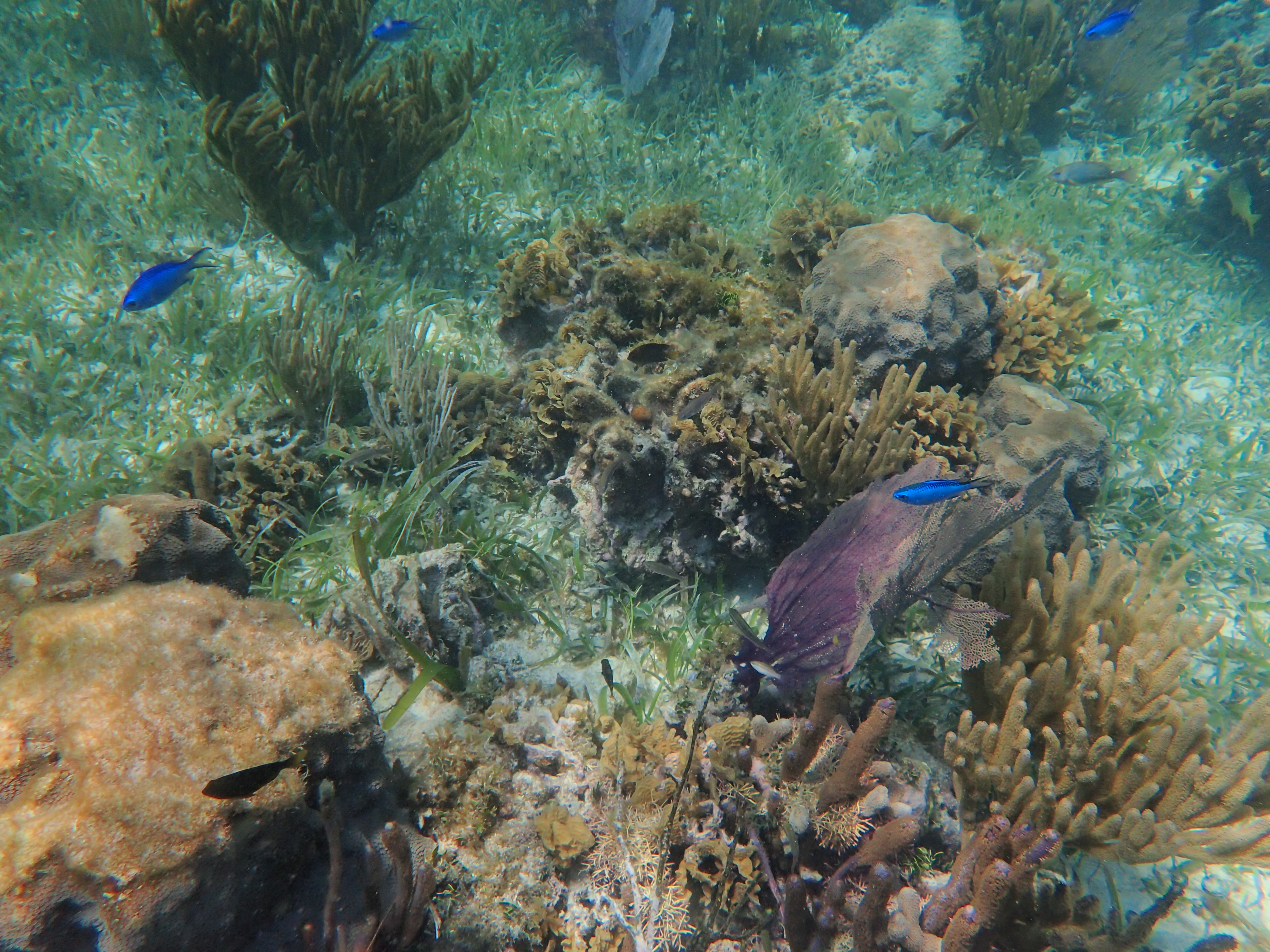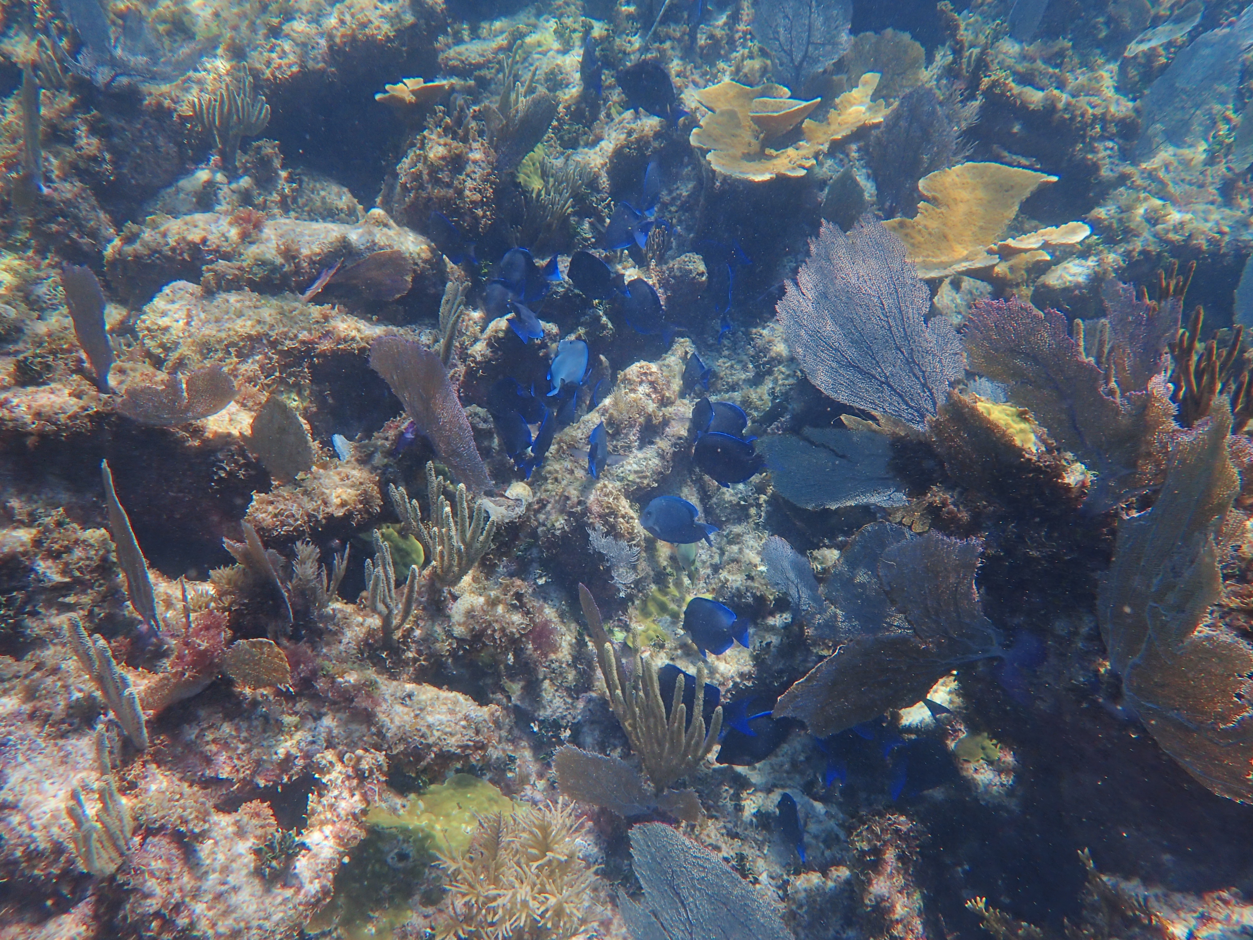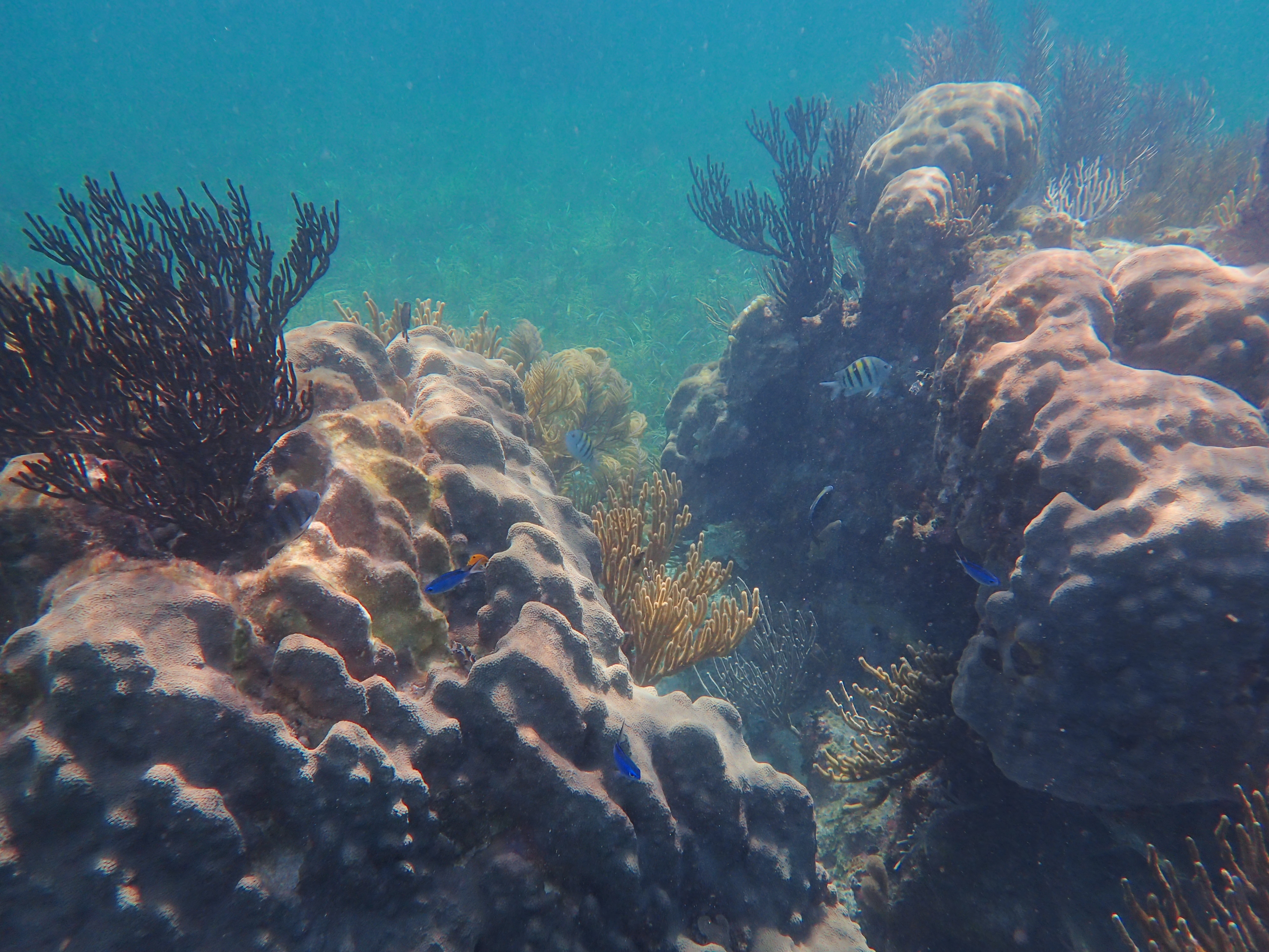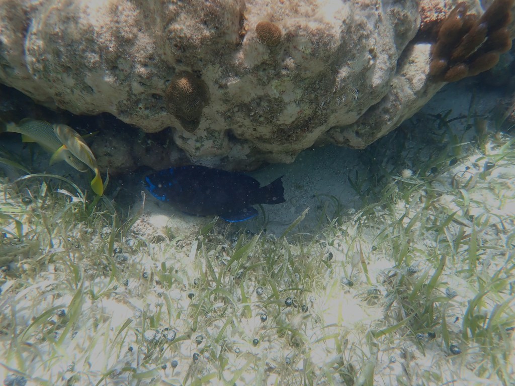 It rained all morning. The visibility in the water isn’t too good, things are a bit stirred up. But the sights are still beautiful, if just a little cloudy.