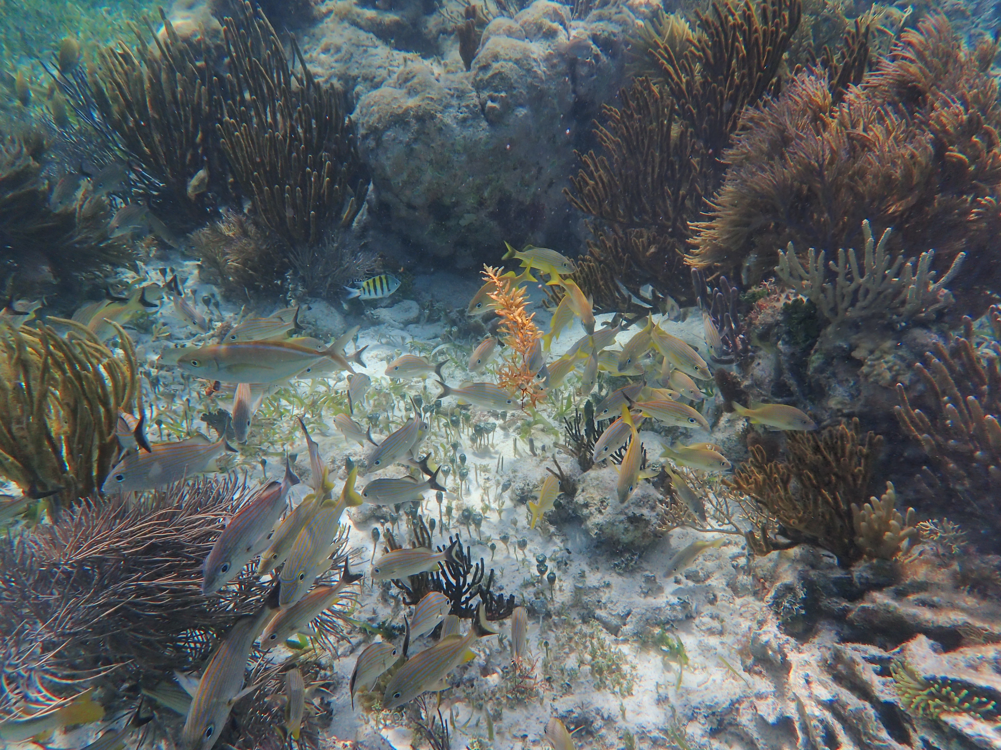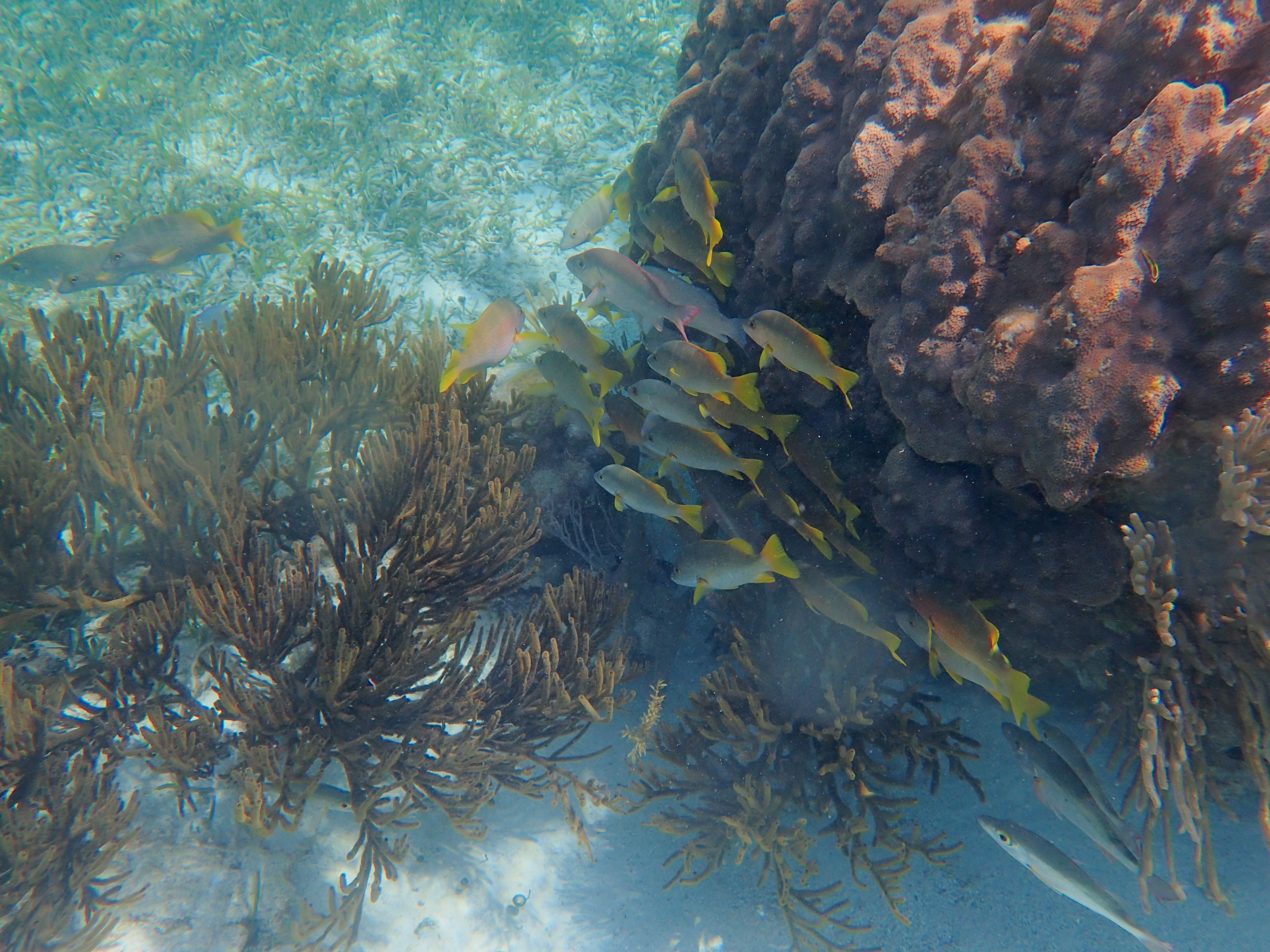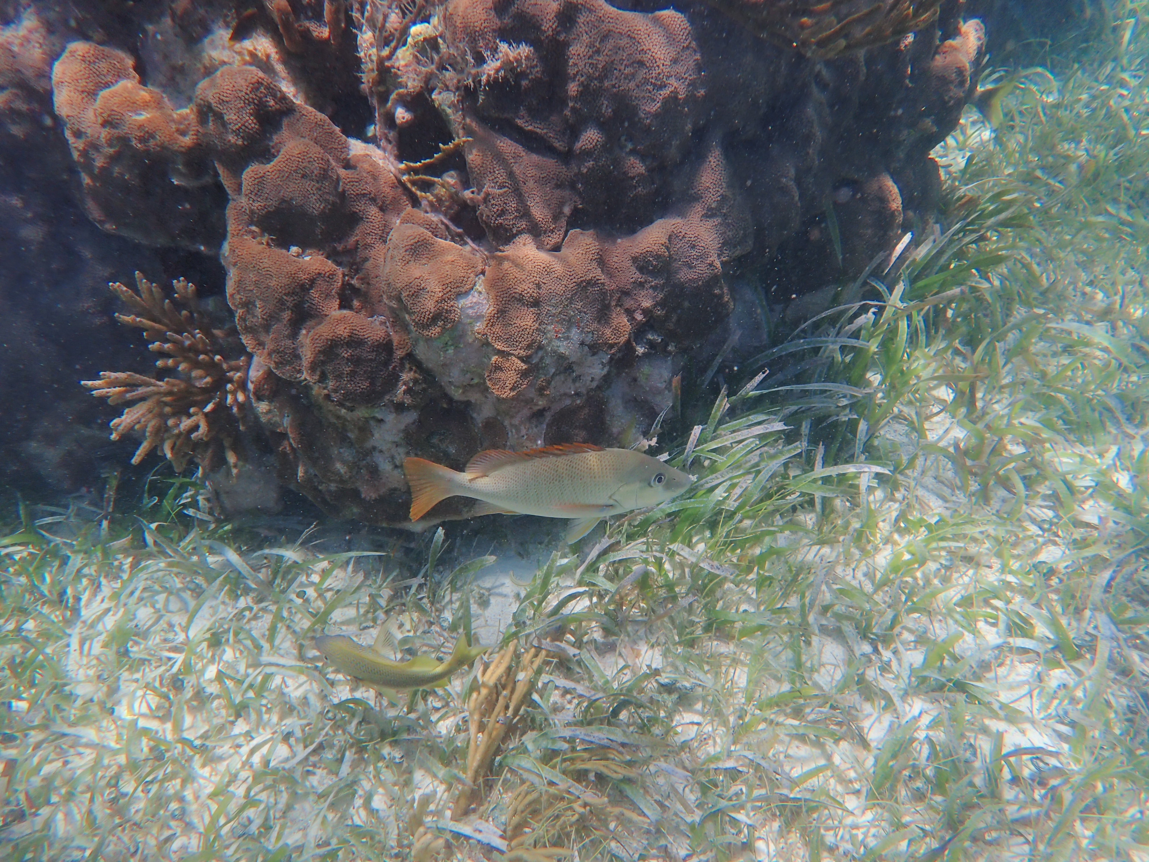 It rained all morning. The visibility in the water isn’t too good, things are a bit stirred up. But the sights are still beautiful, if just a little cloudy.