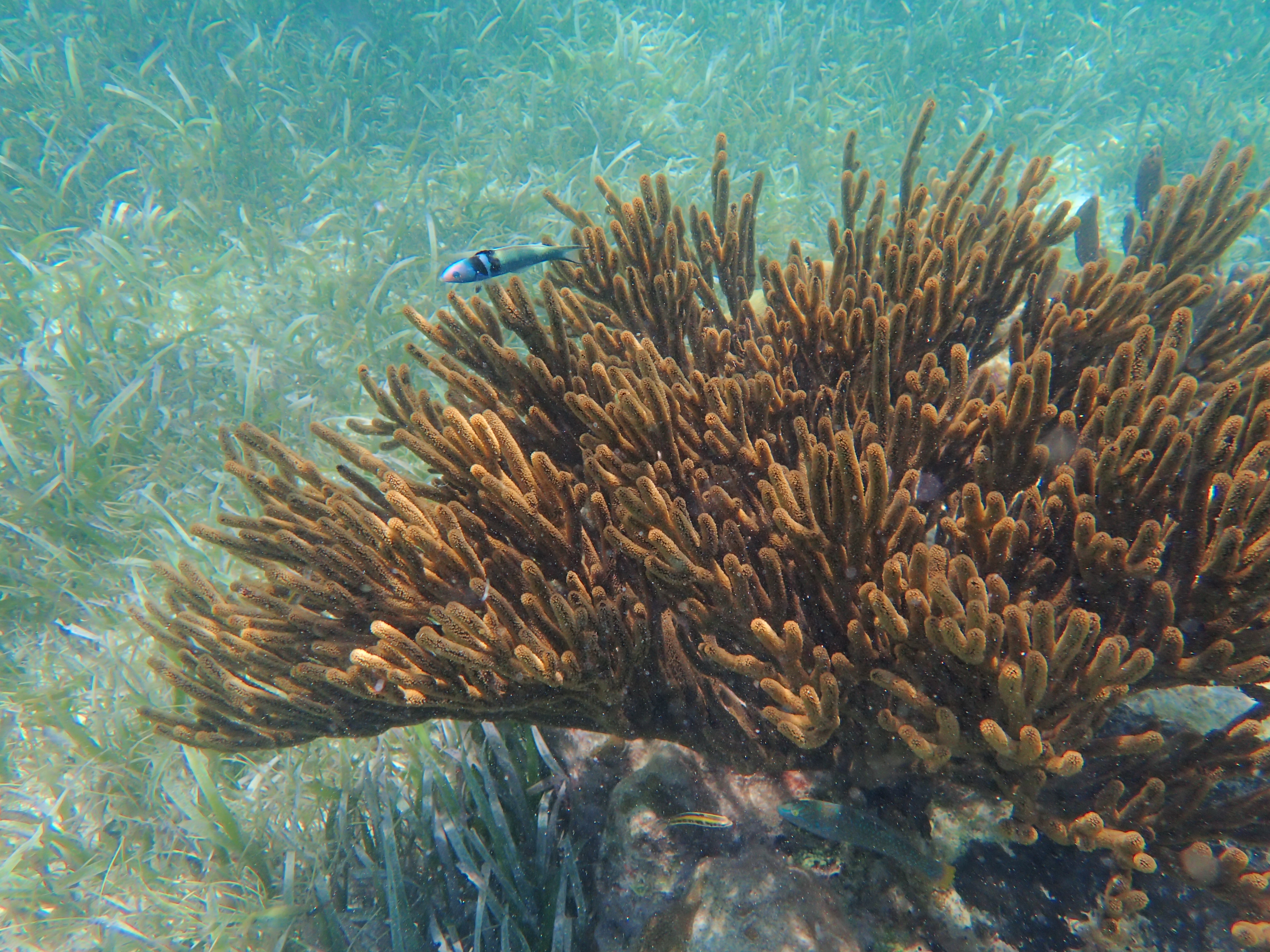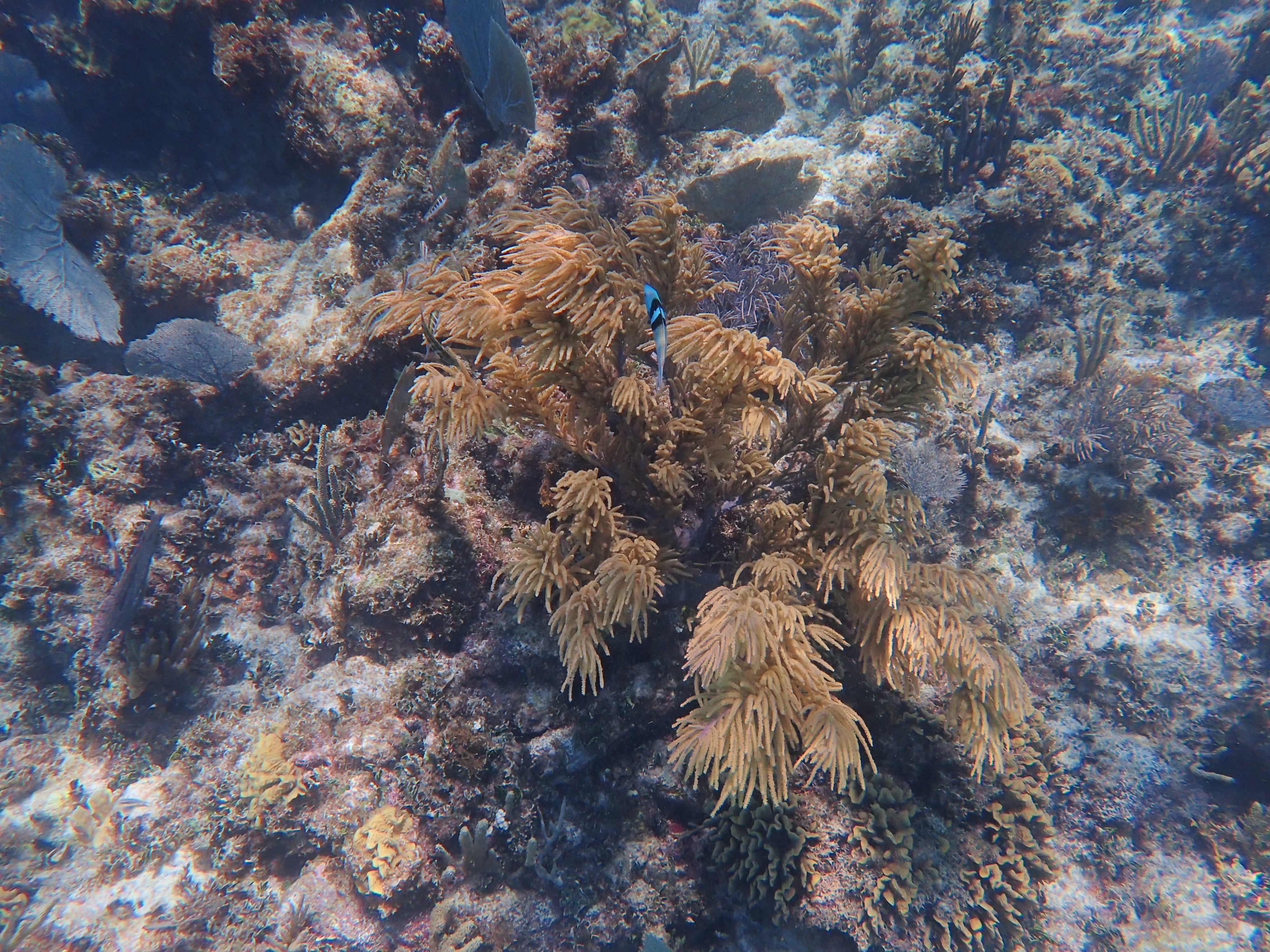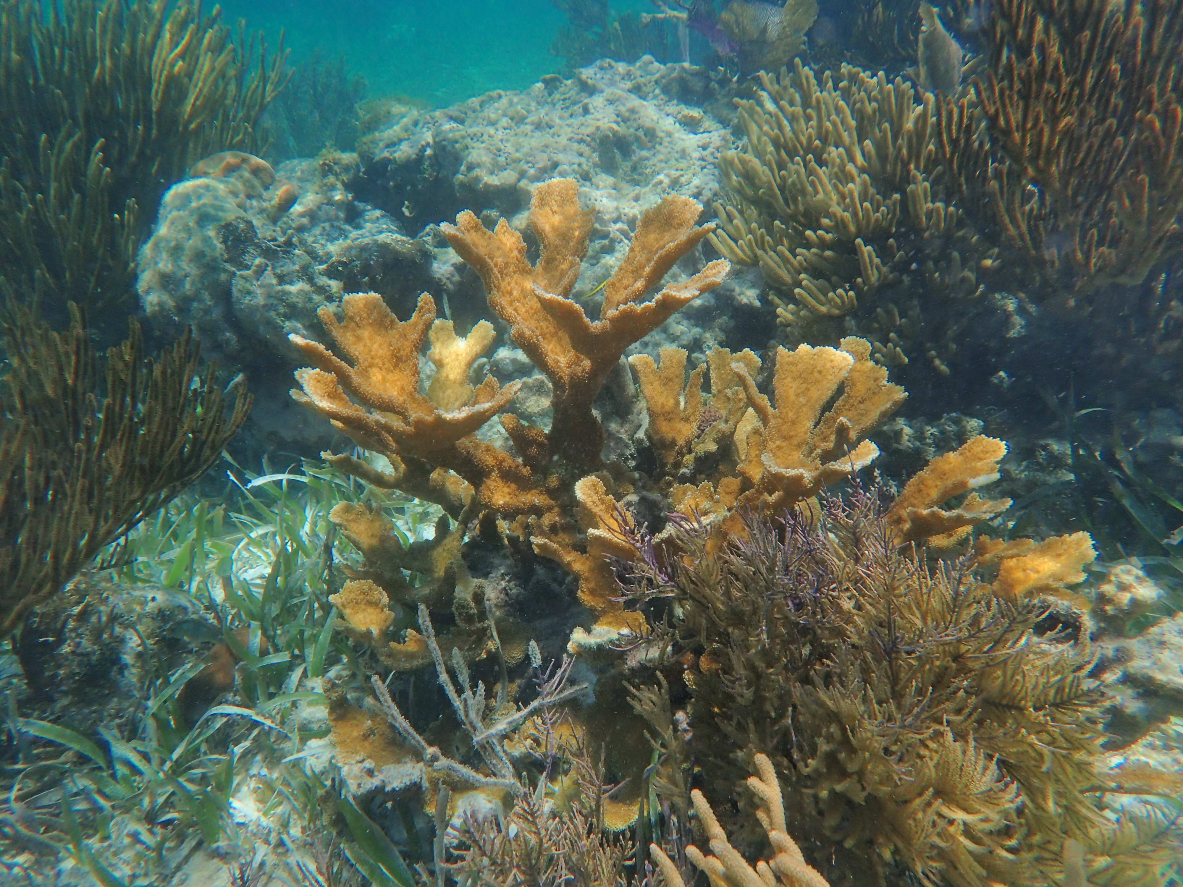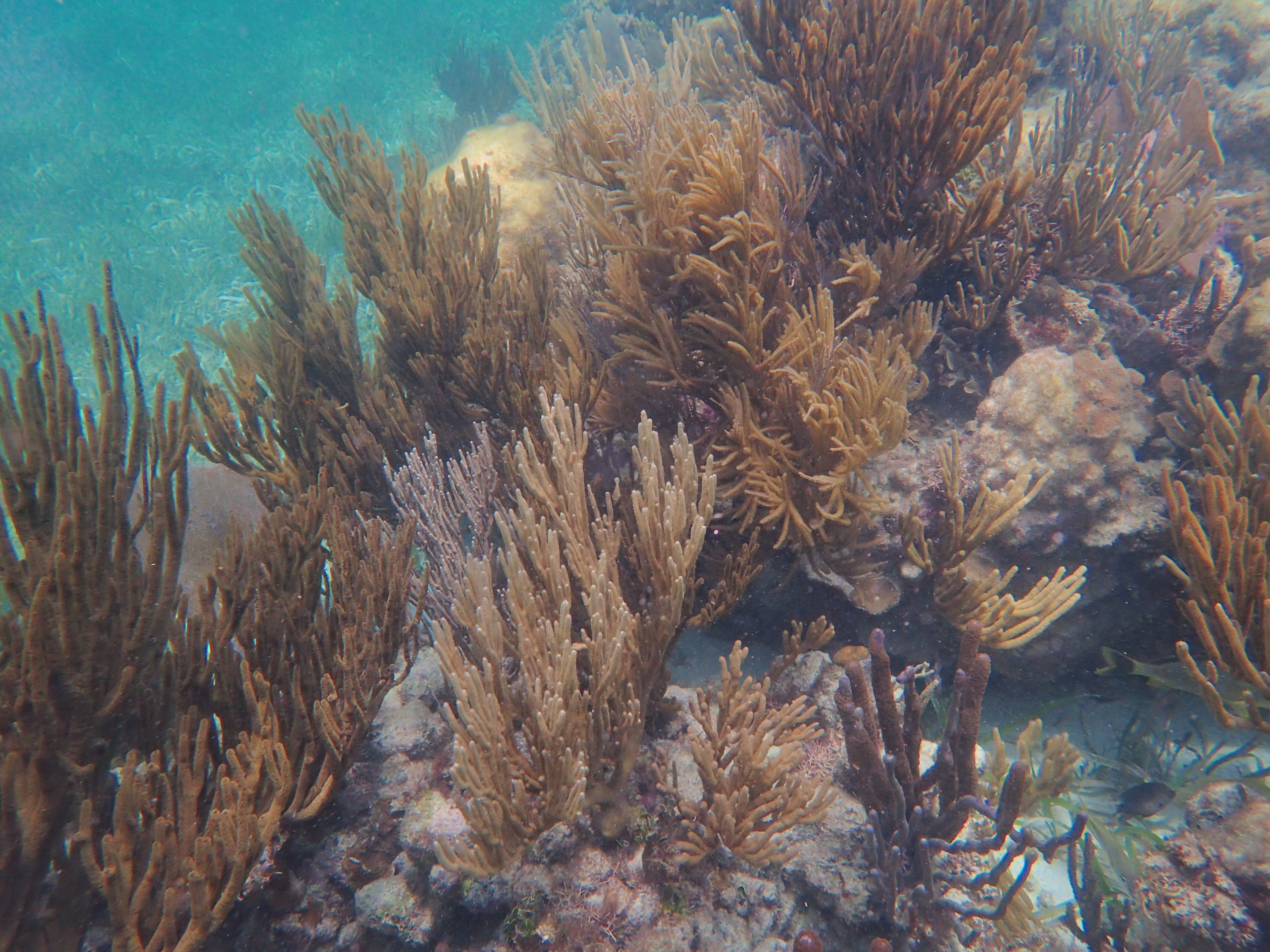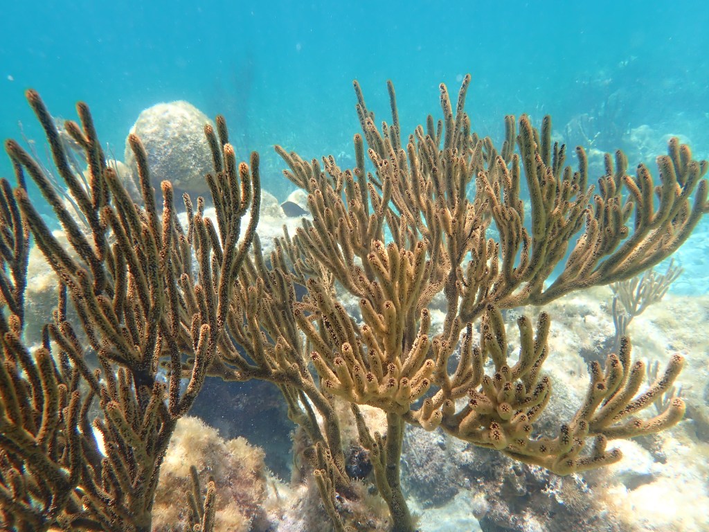 The hard corals grow slower and are more endangered. There was a time when you could see fields of this elk-horn coral, now its solitary specimens.