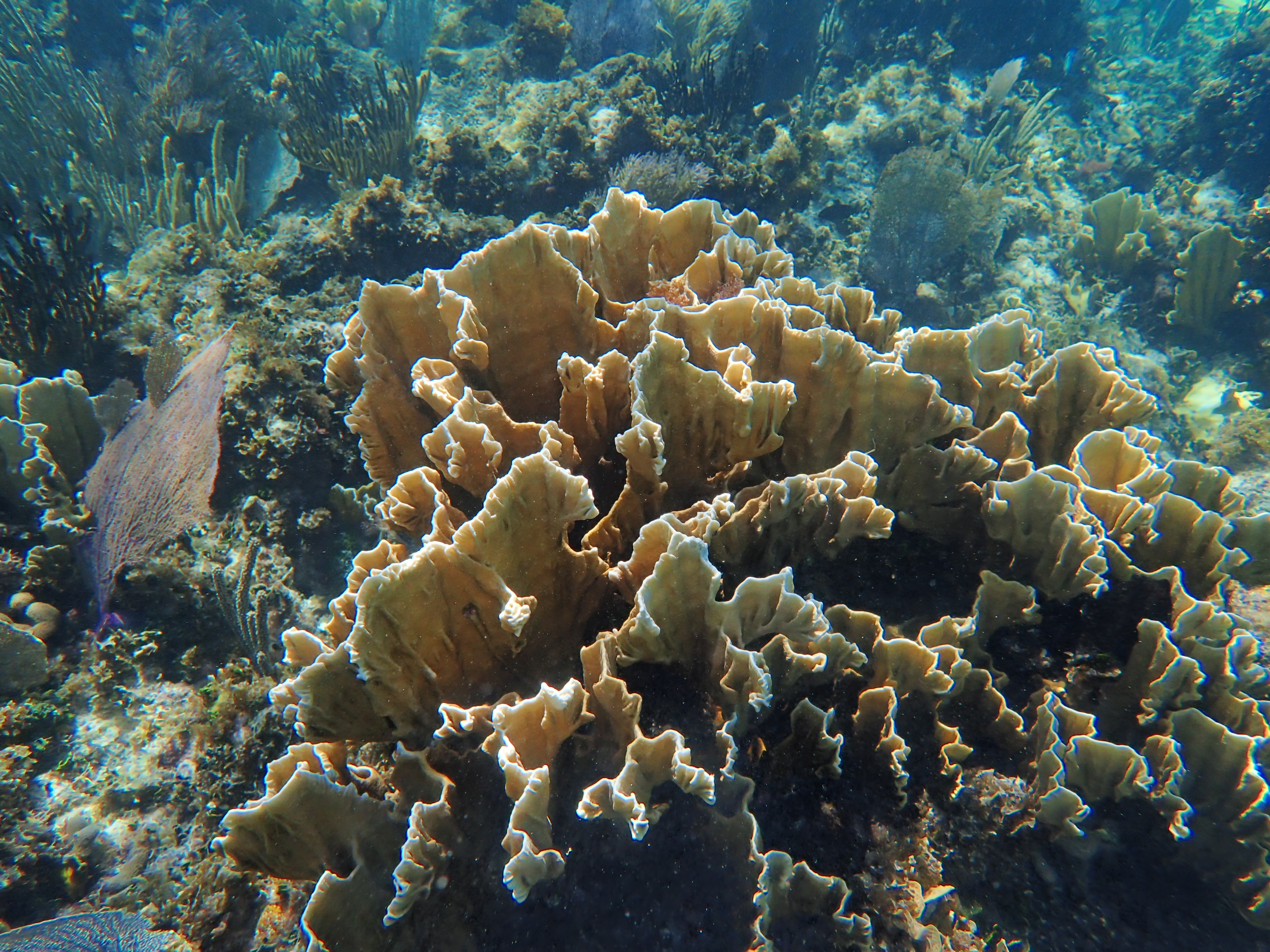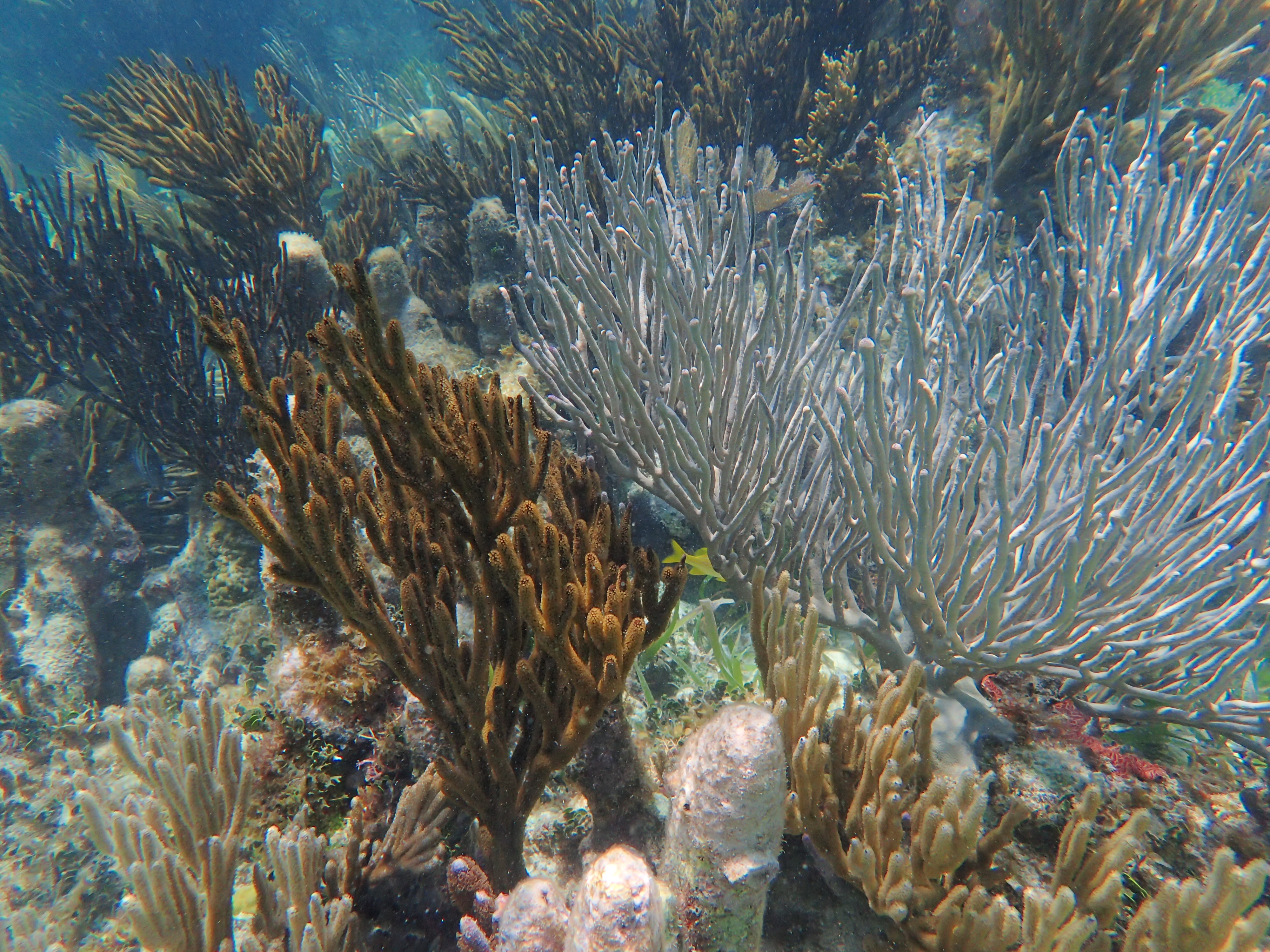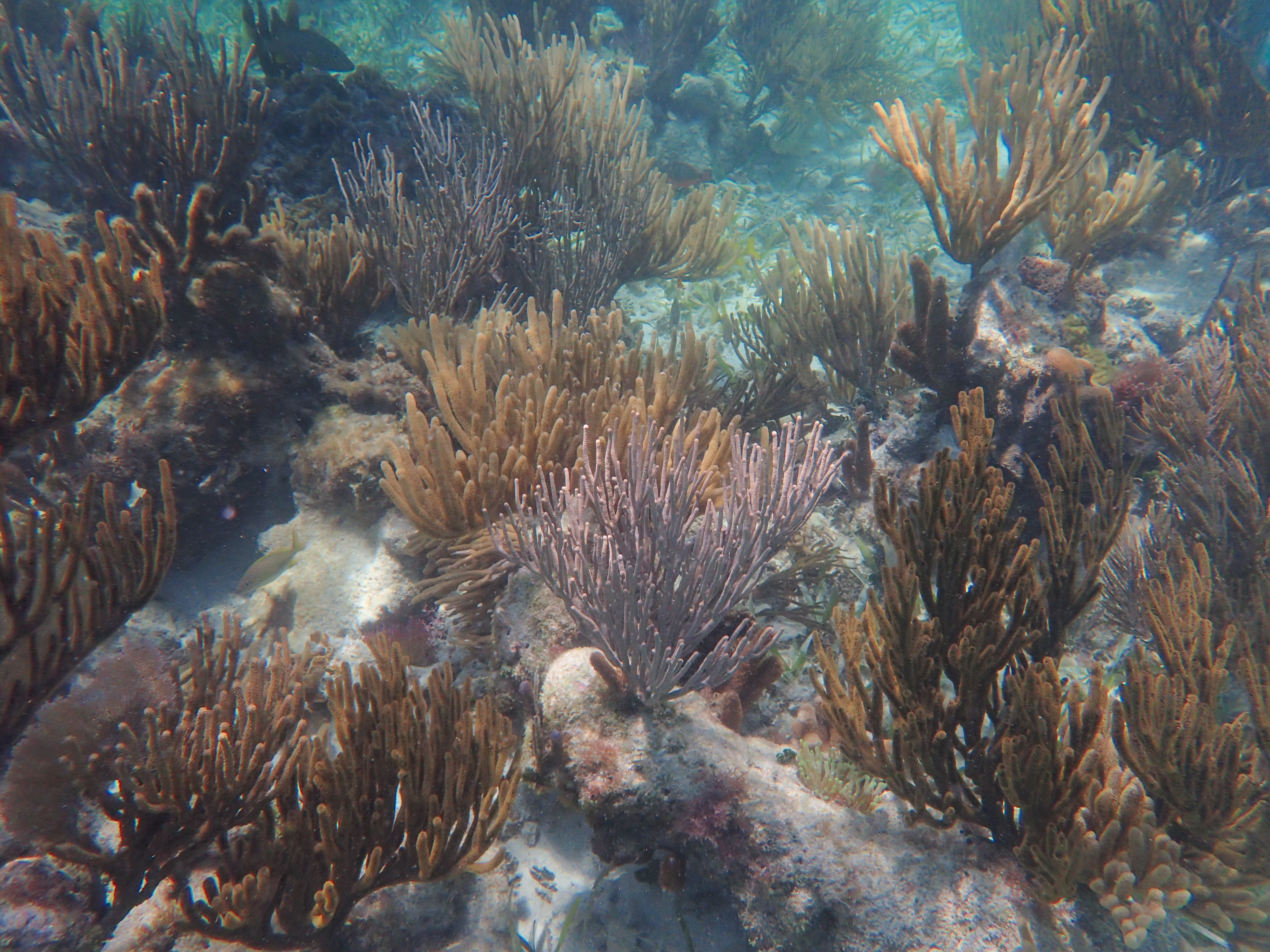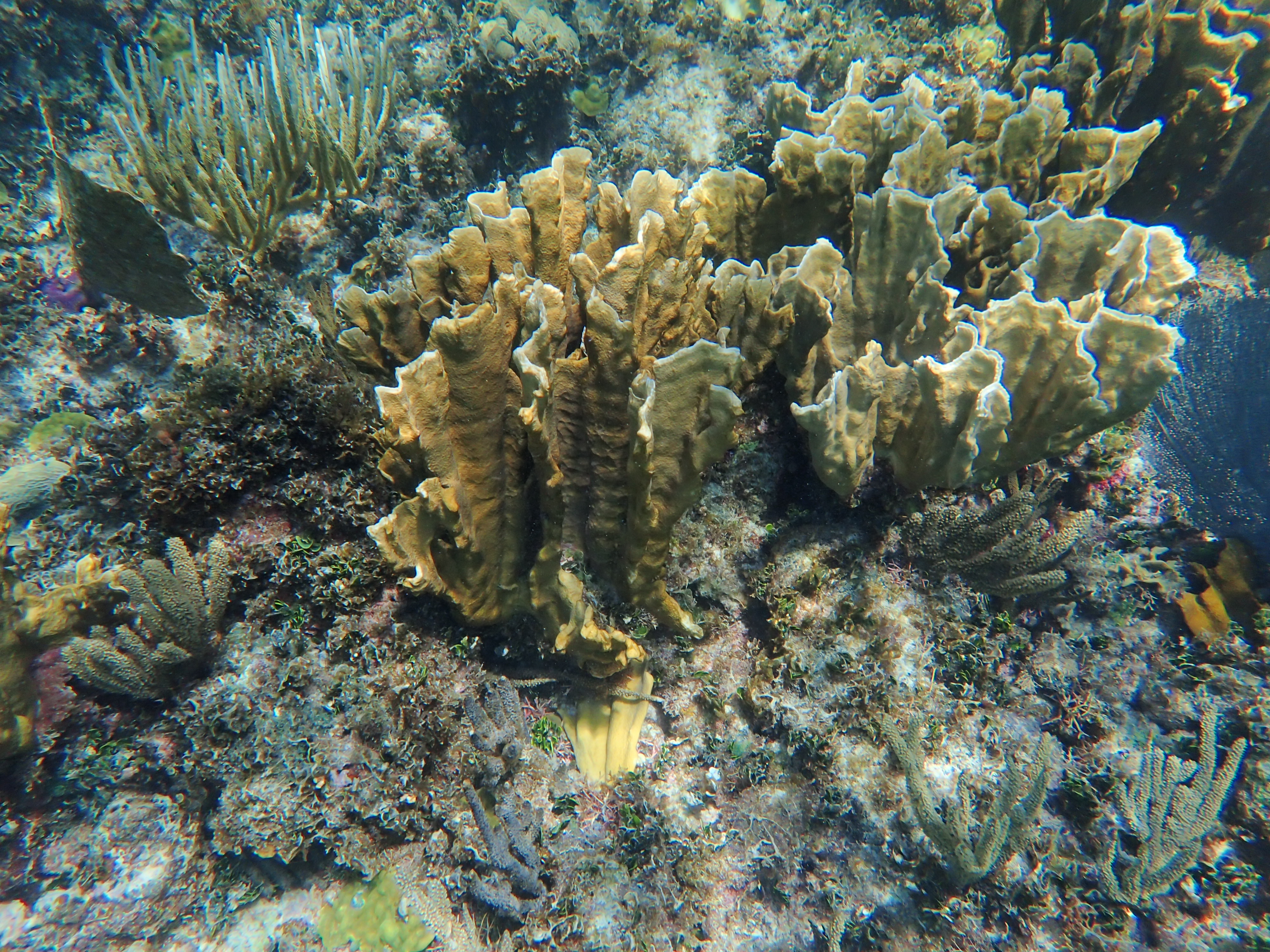 The hard corals grow slower and are more endangered. There was a time when you could see fields of this elk-horn coral, now its solitary specimens.