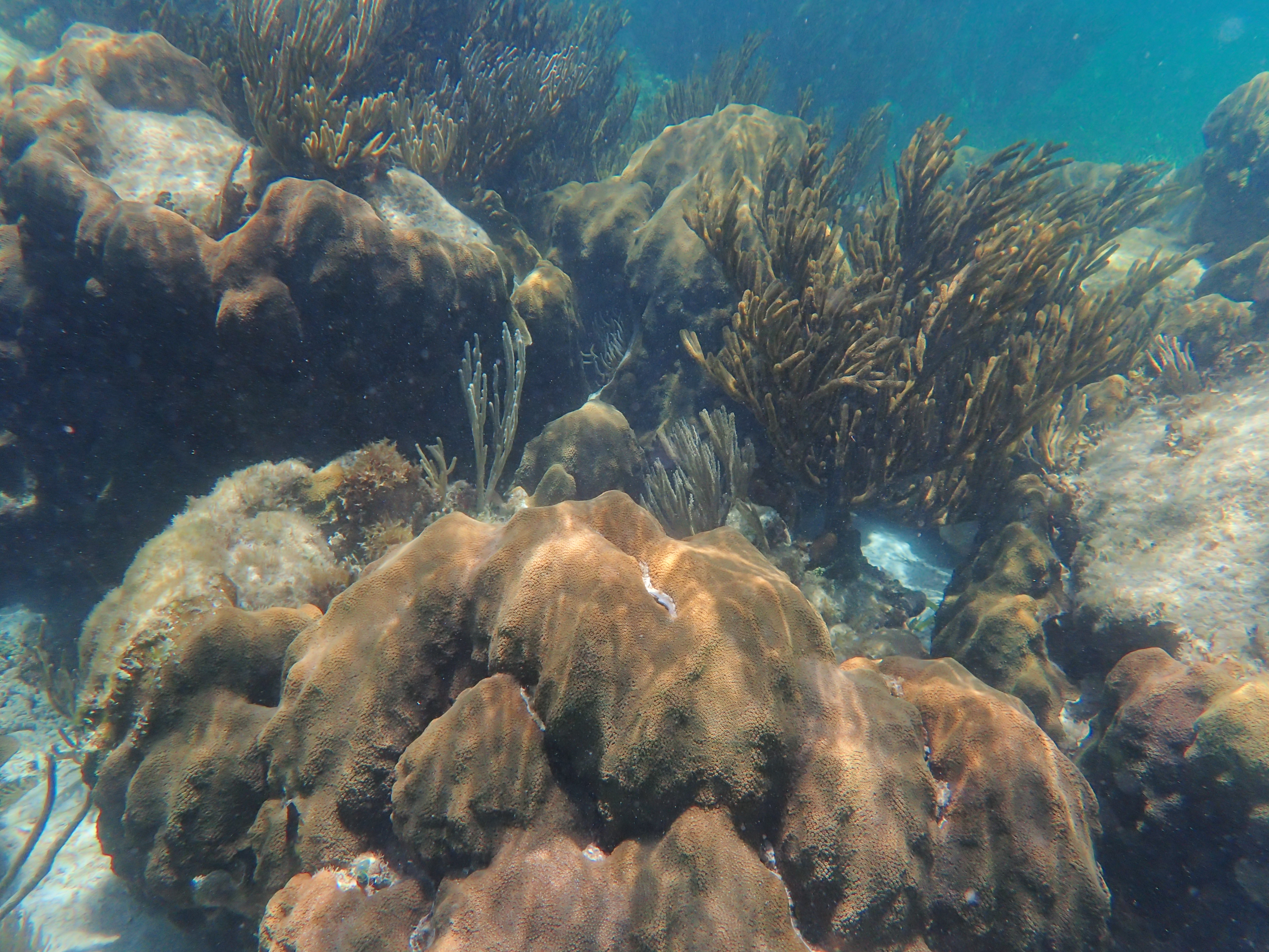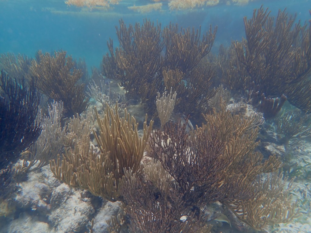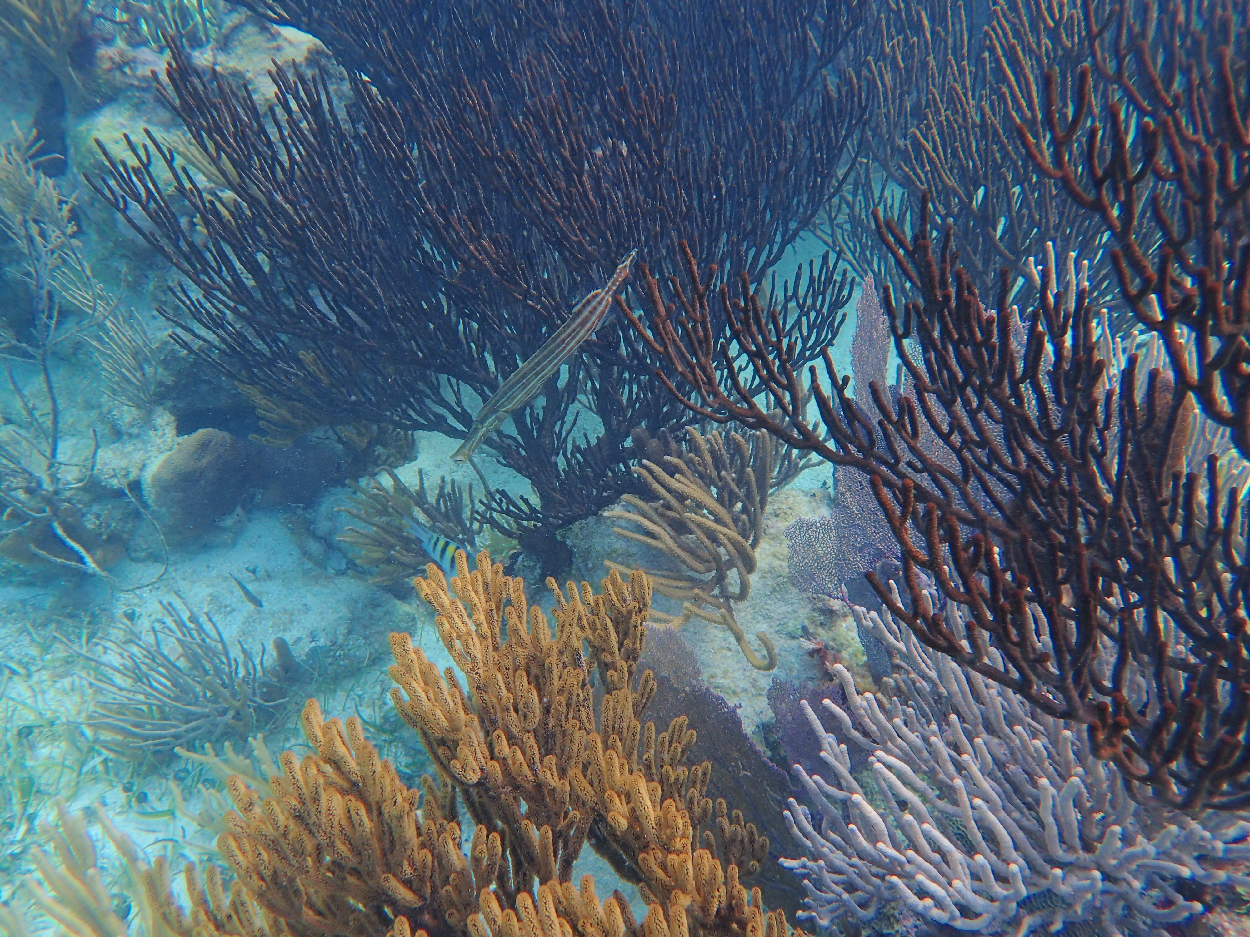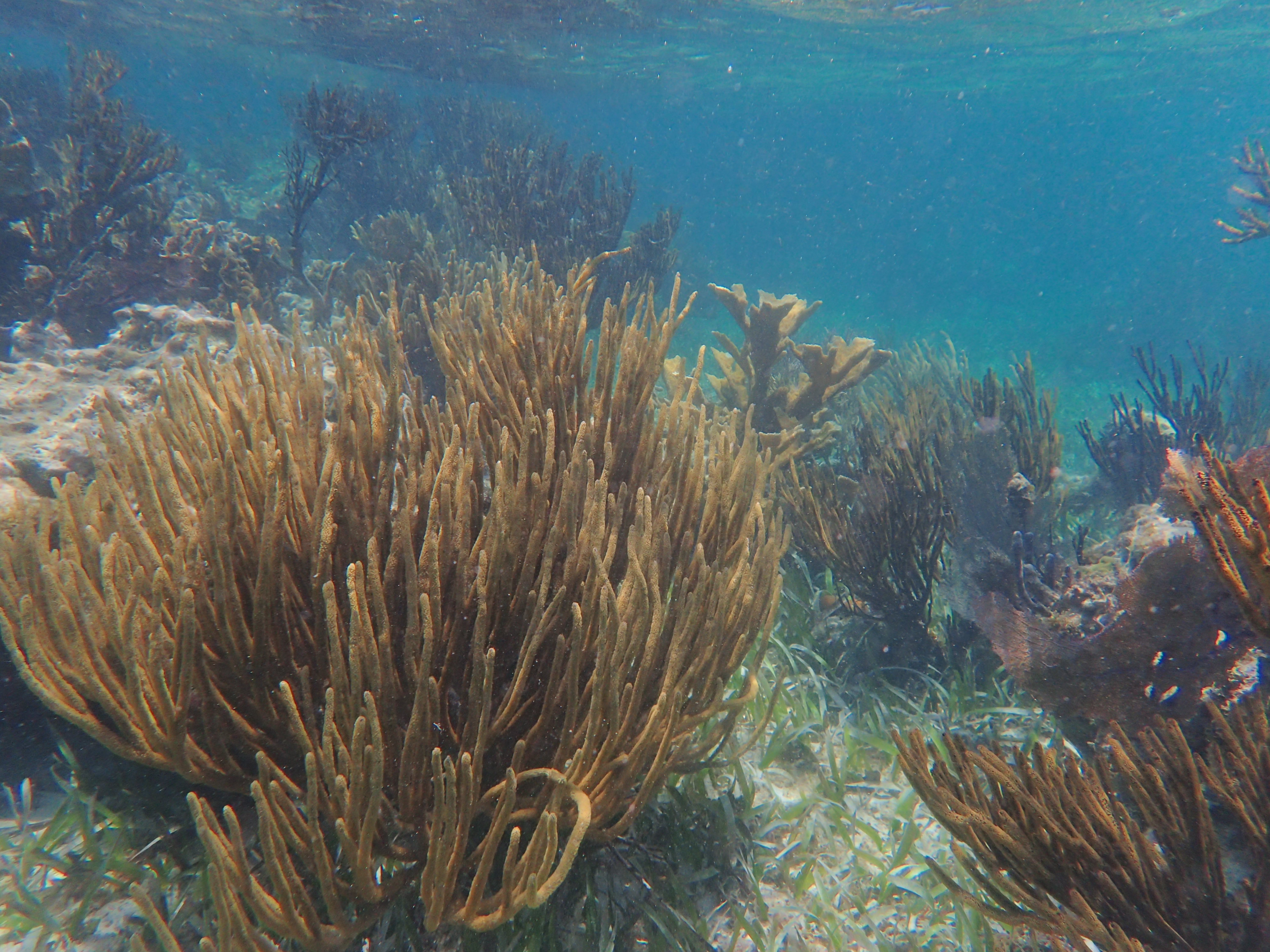 The hard corals grow slower and are more endangered. There was a time when you could see fields of this elk-horn coral, now its solitary specimens.