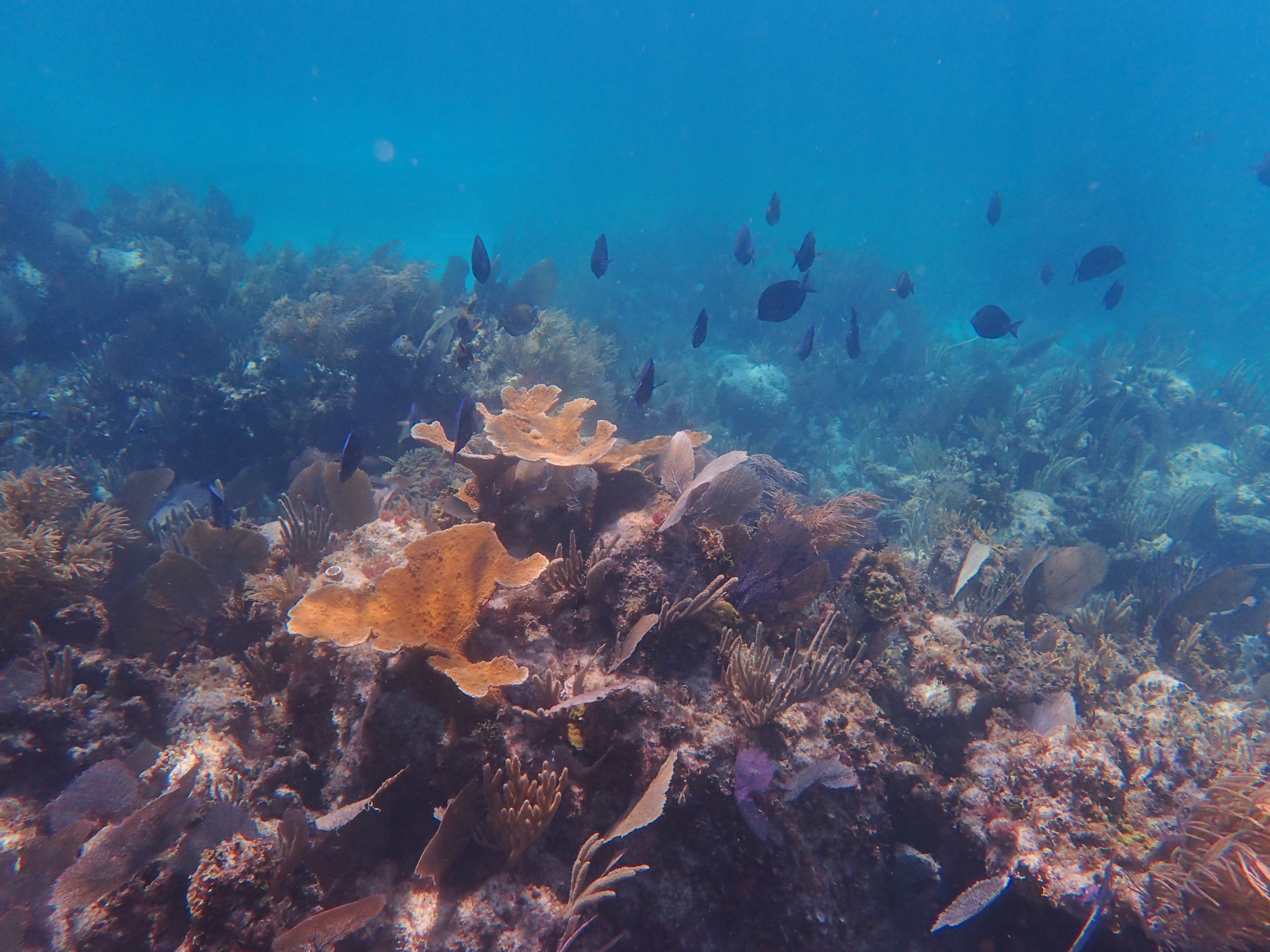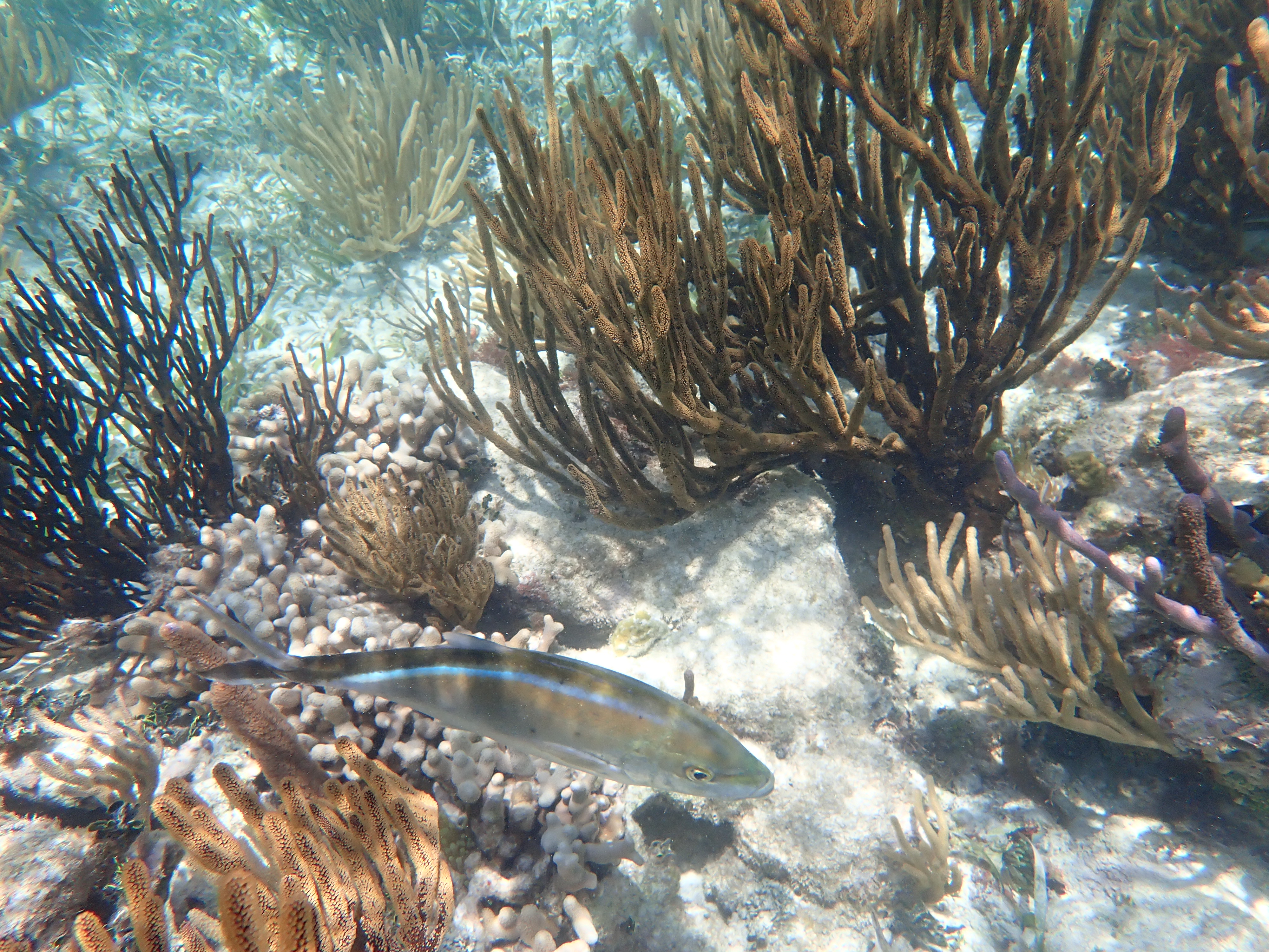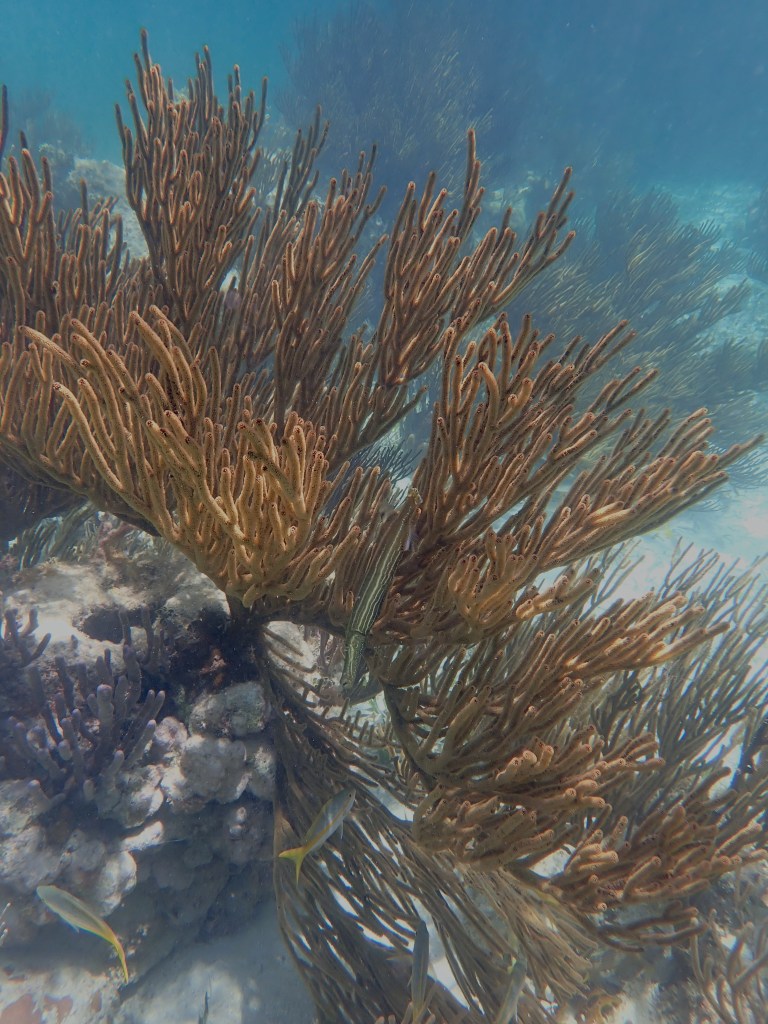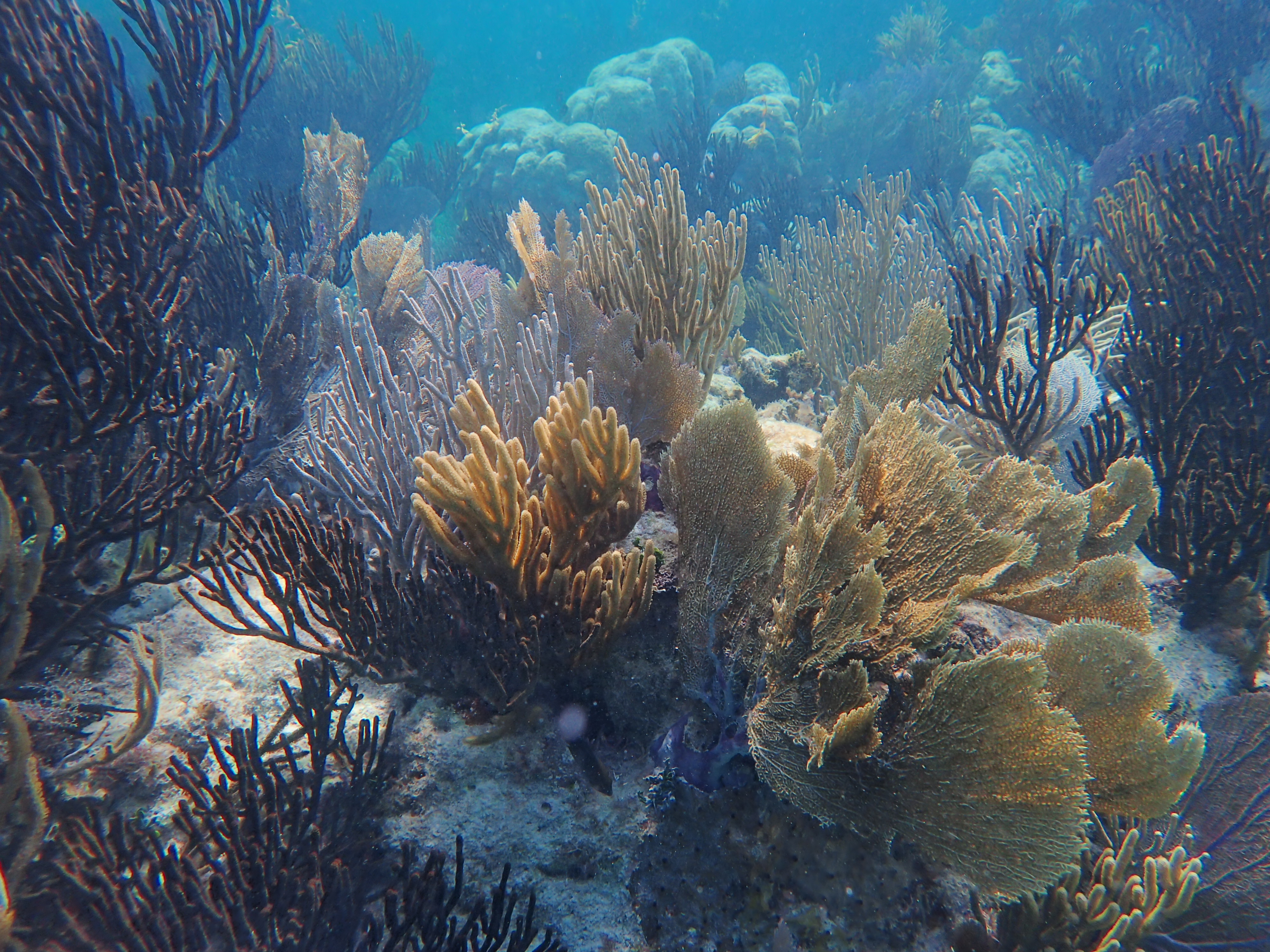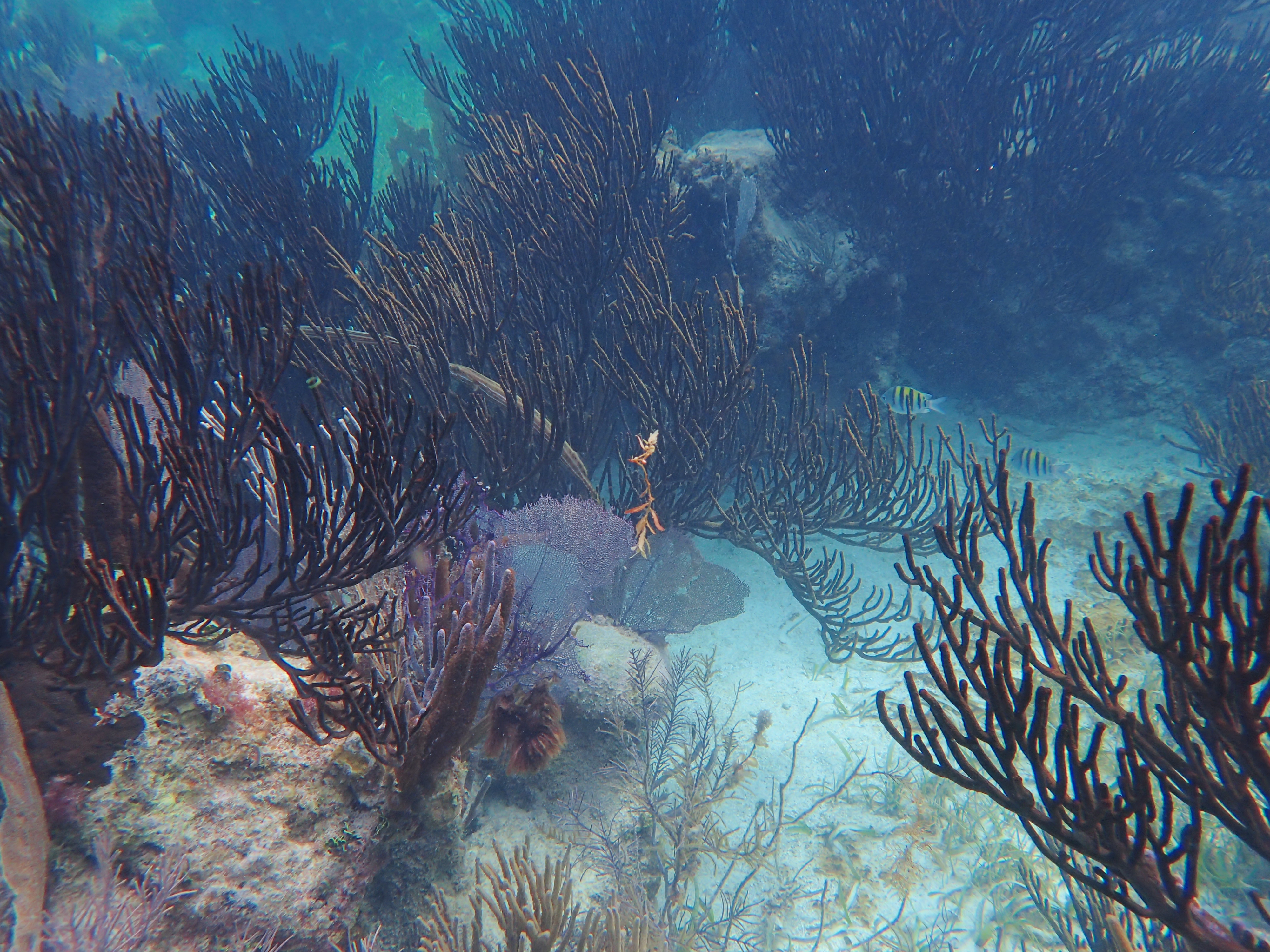 The hard corals grow slower and are more endangered. There was a time when you could see fields of this elk-horn coral, now its solitary specimens.
