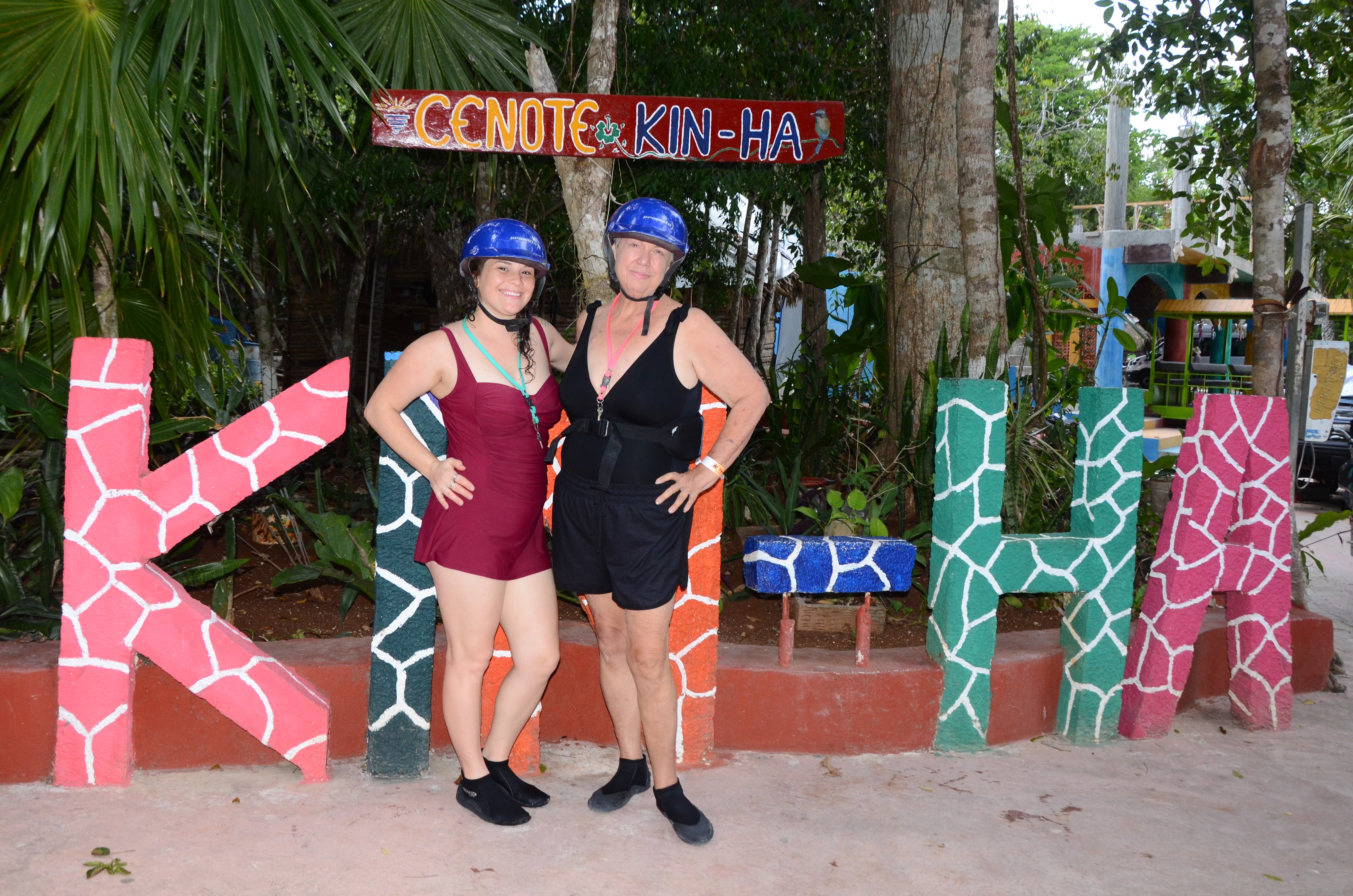 We had an option of zip lining into the cenote. We both did, got pics of Ace.
