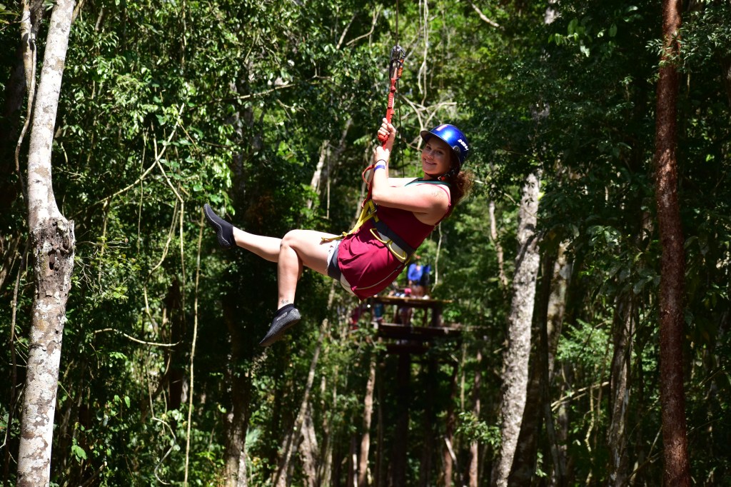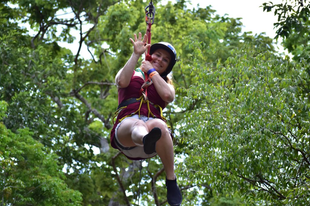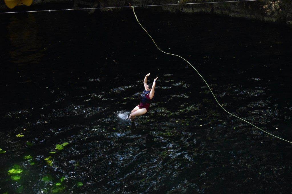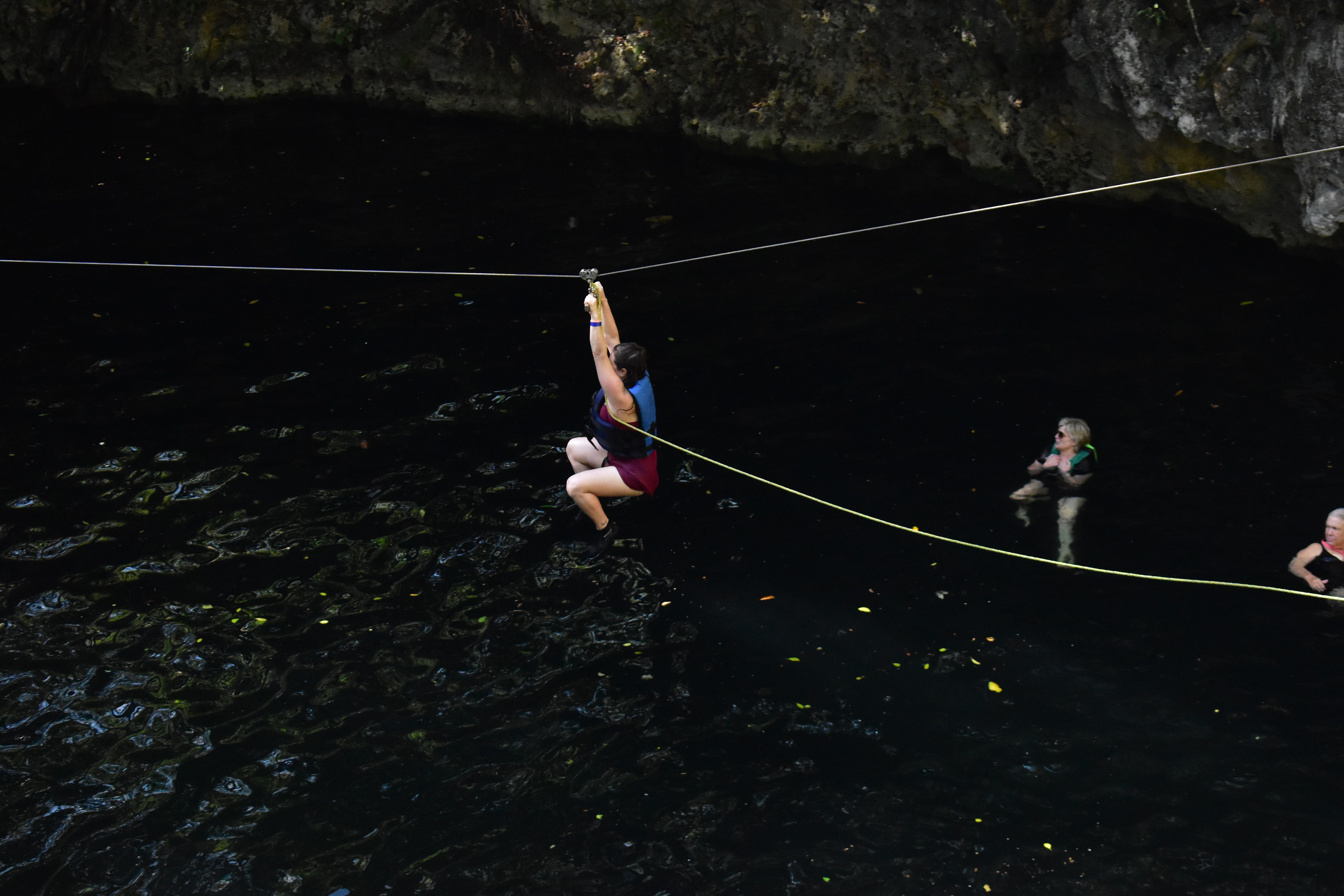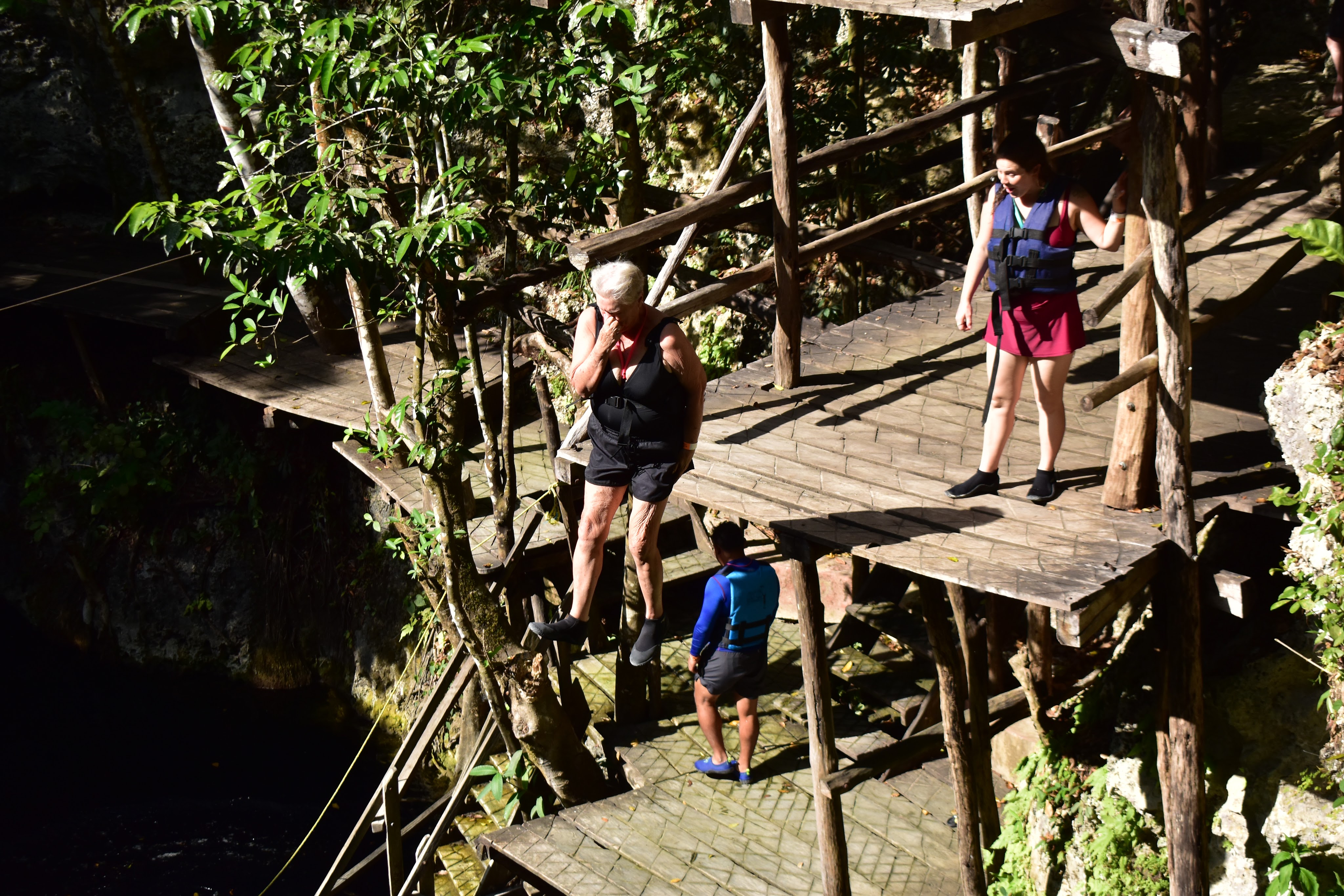 Instead of going straight into the cenote, As I did. you could first take a zip lie into the jungle. Ace gave it a try. I was ready to get cooled off in the water, so opted for the cenote.