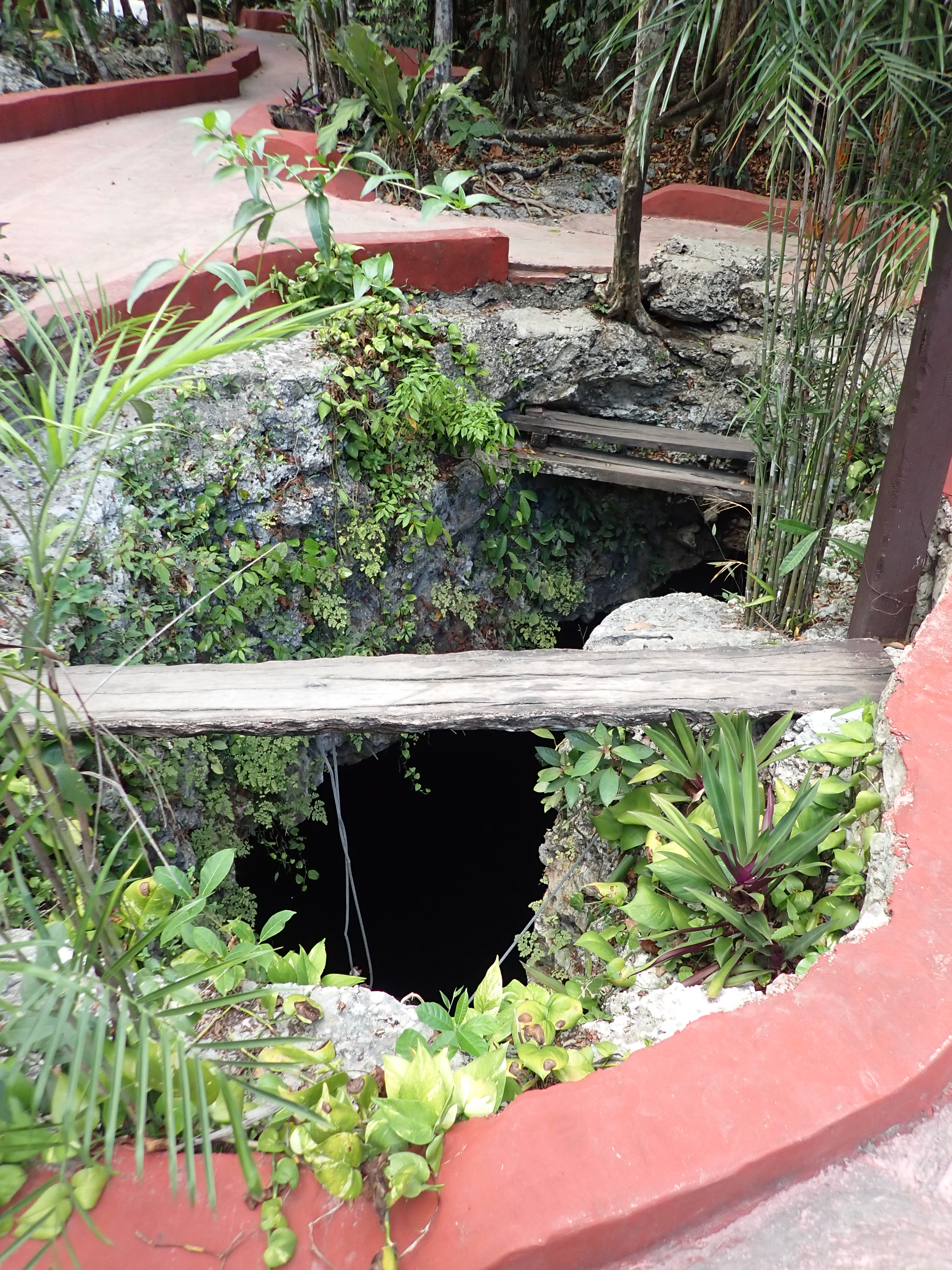 This log across the opening was where you may jump into the water. After watching a few people jump, all young I might add. I jumped. The scariest part was walking over to the place to jump in middle of that log over the cenote.