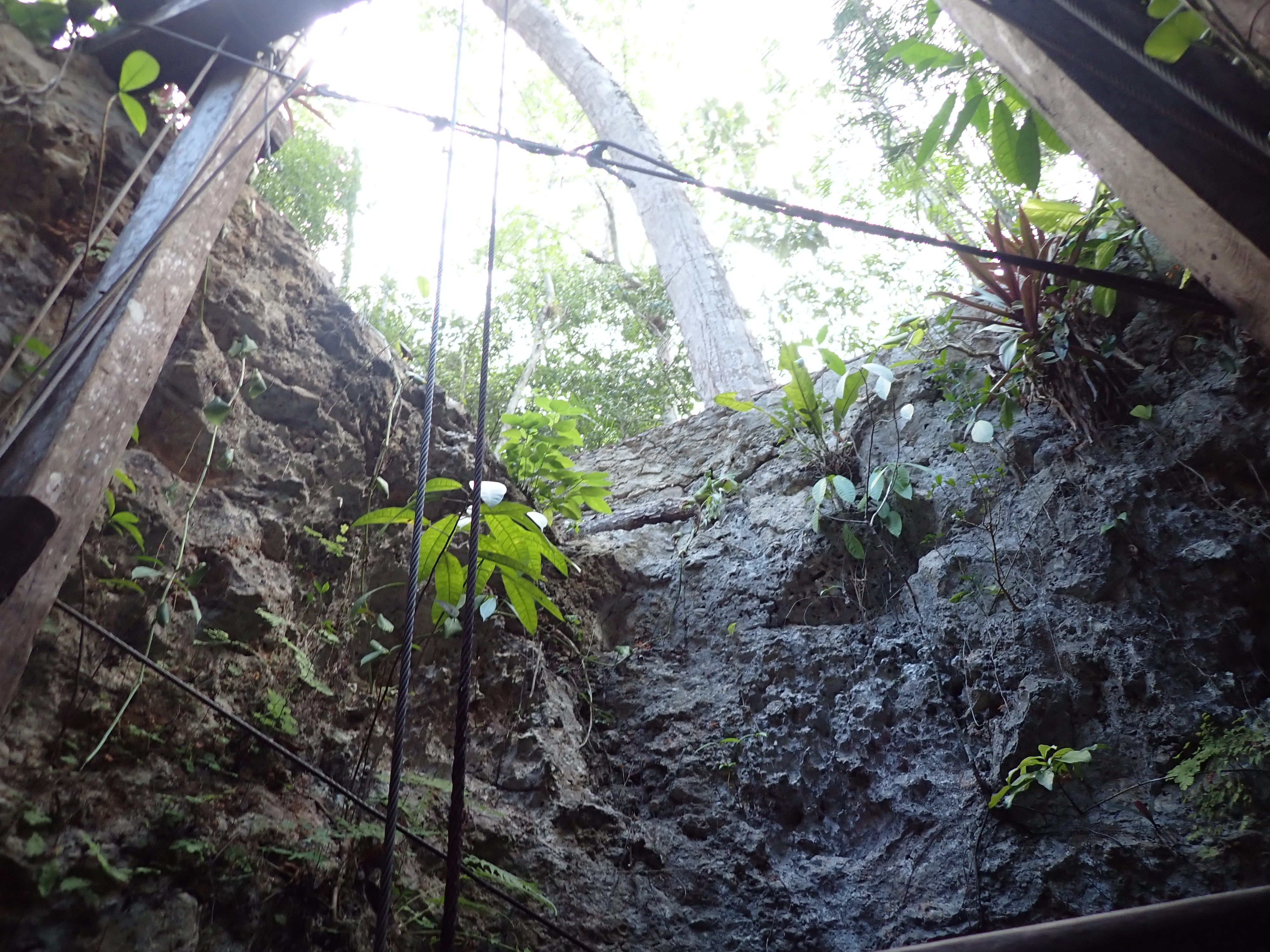 Instead of going straight into the cenote, As I did. you could first take a zip lie into the jungle. Ace gave it a try. I was ready to get cooled off in the water, so opted for the cenote.