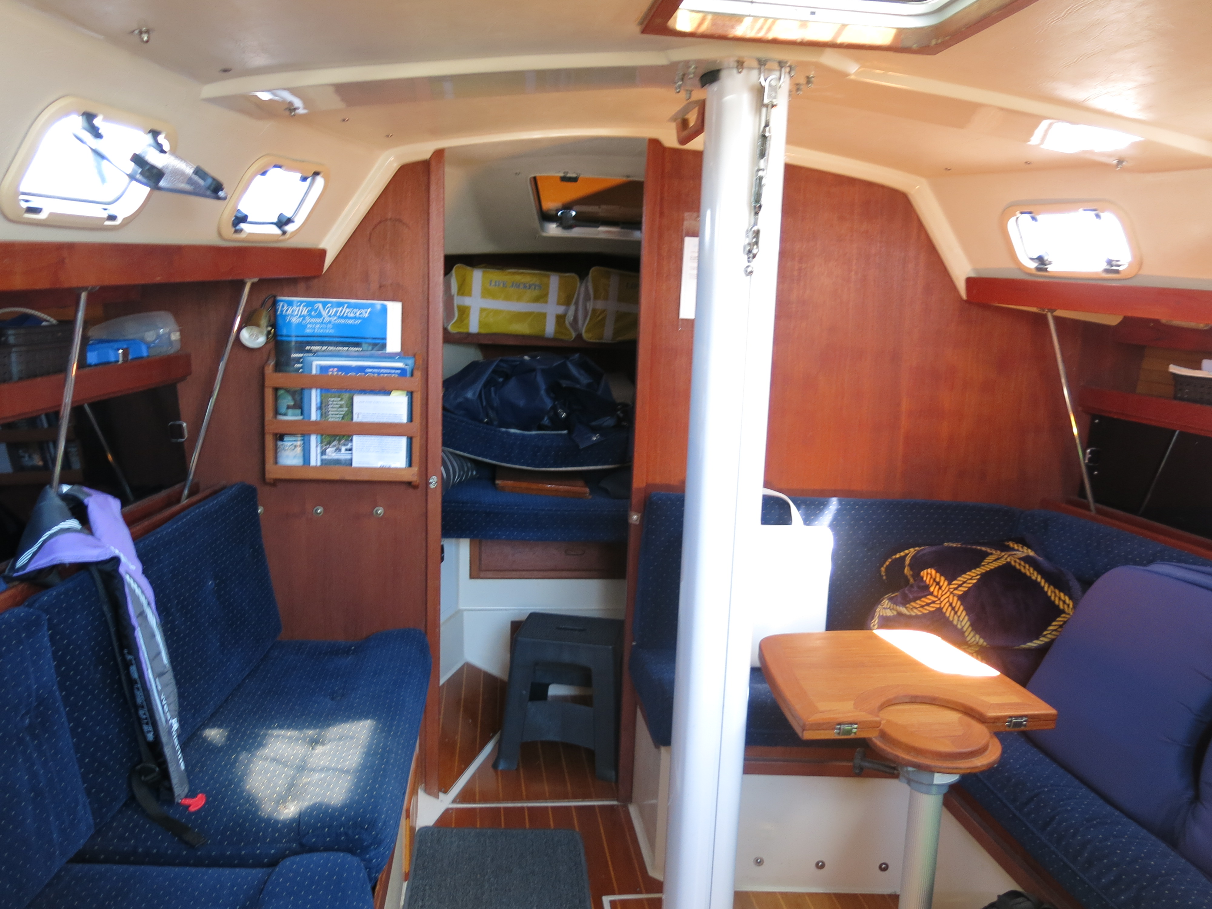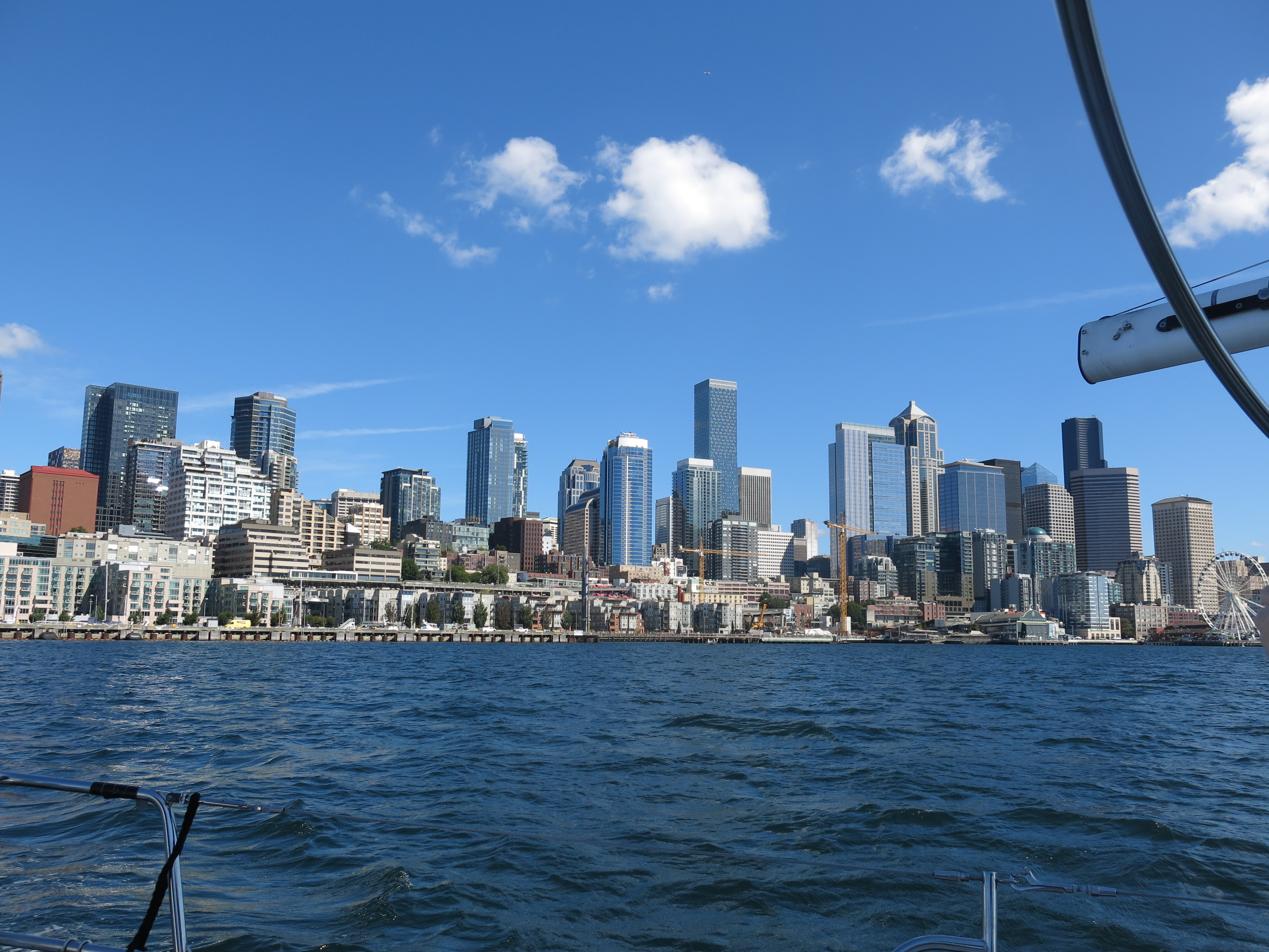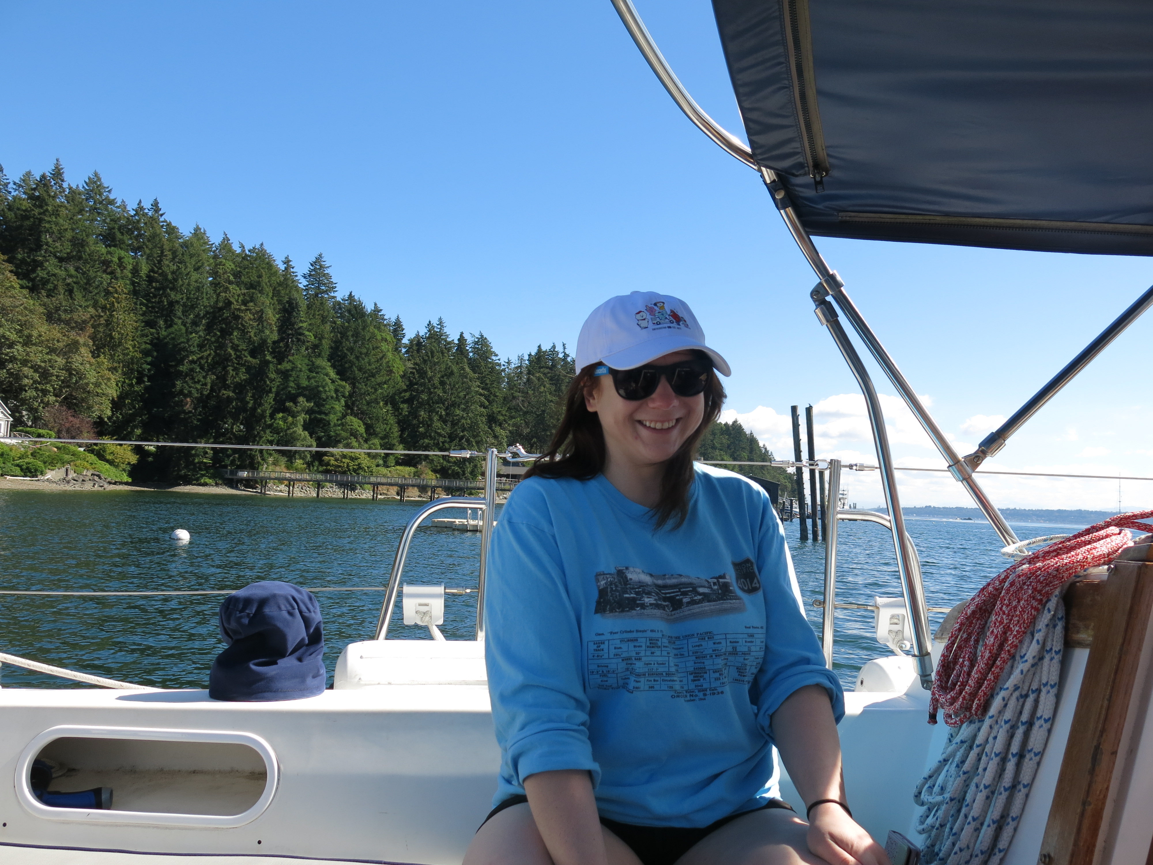 Captain Scott, is a pilot, a lawyer, and worked in Seattle. He sailed to work, in downtown Seattle. It took about an hour. We’re very pleased to charter with him. He answered our sailing questions. Chris impressed me on knowing all the lingo. He showed Chris around the boat, the engine, and the sails, he explained everything. Chris helped manage the sails.