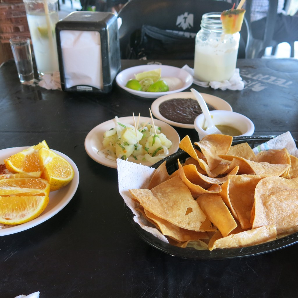 Walked down to La Playita restaurant for a seafood dinner. Our last dinner here, we’re leaving tomorrow. It has a lovely view of the beach and ocean. Shirlee treated us. I had fish and they had shrimp. Thank you.