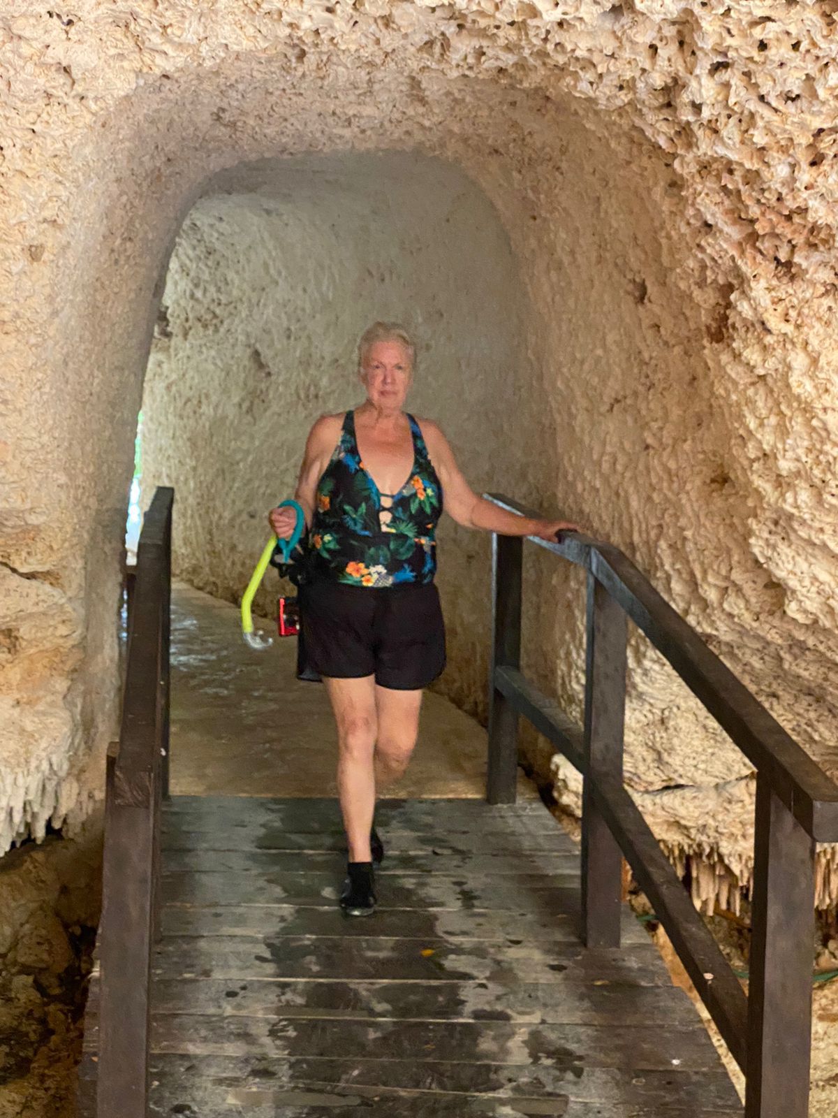 Zip line into Cenote. Ksaey went first, then Shirlee (above), then me, Ann.